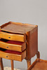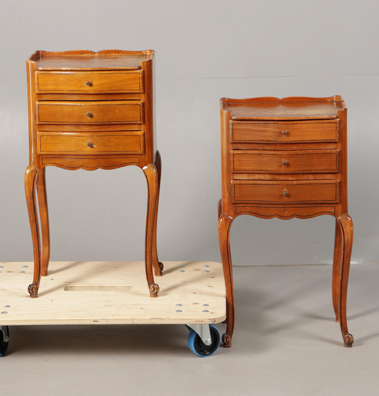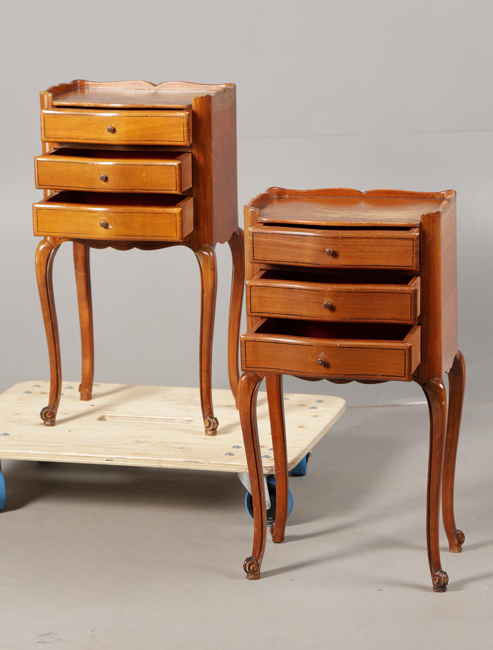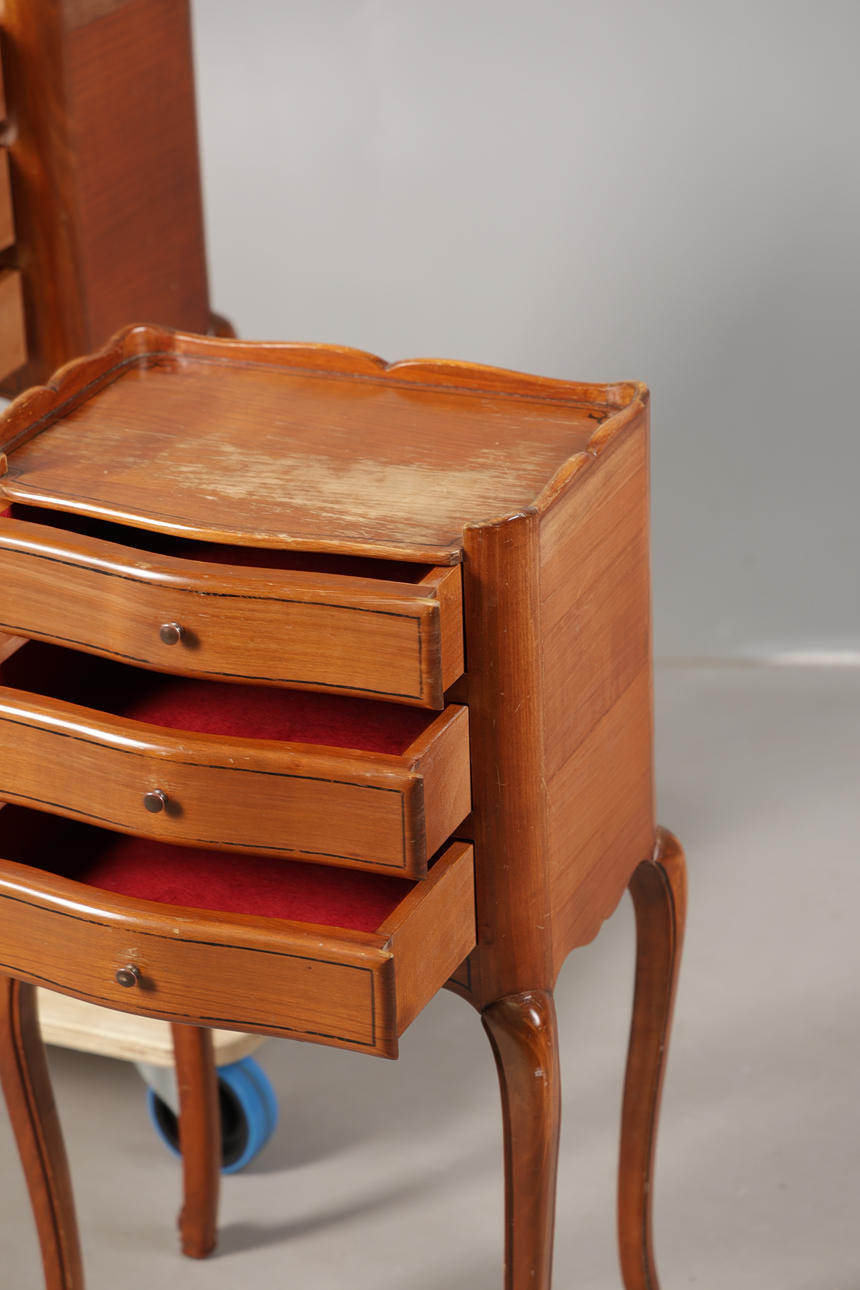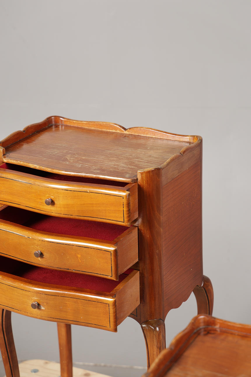 Having wavy galleries above three drawers raised on cabriole legs, 74cm high 38cm wide 28cm deep.