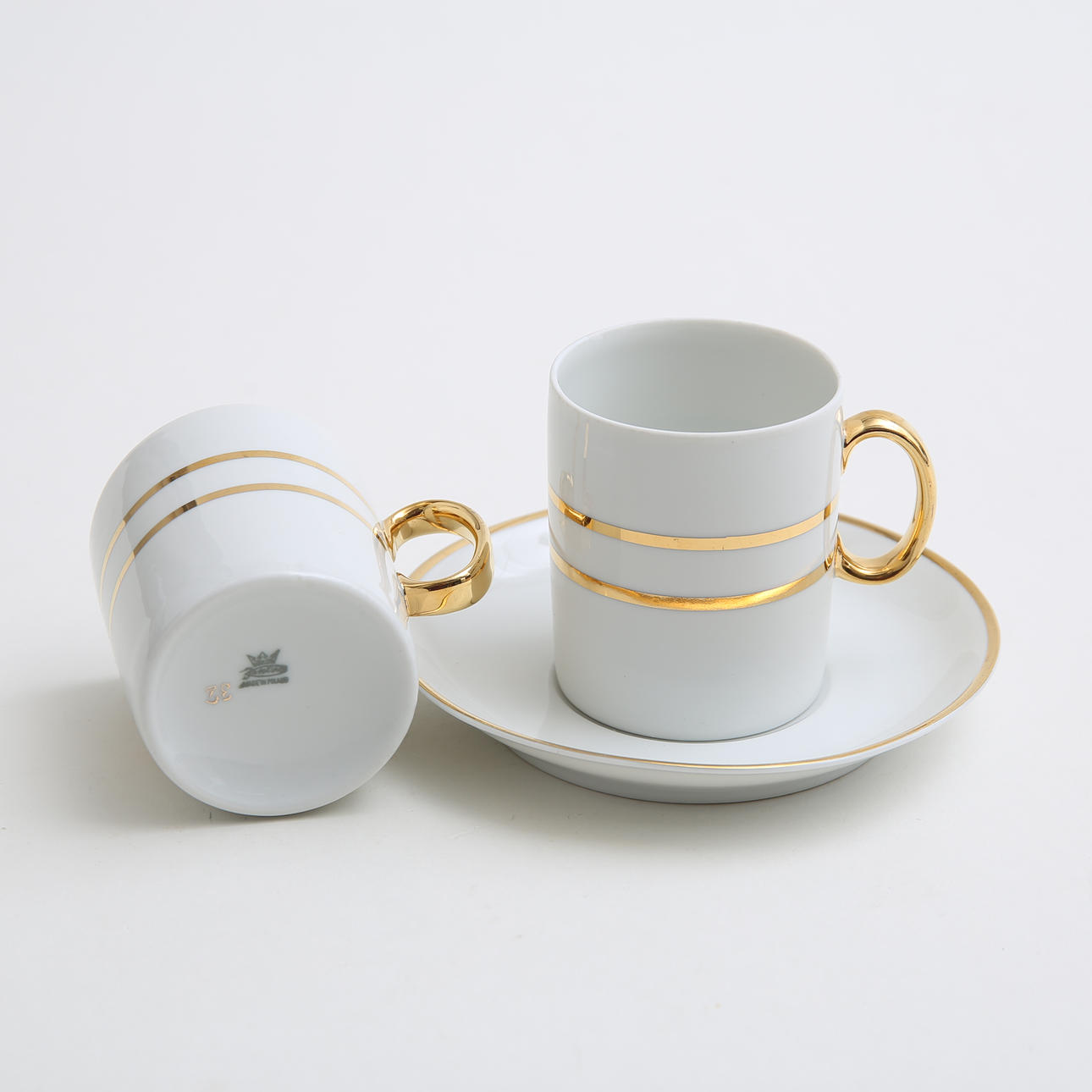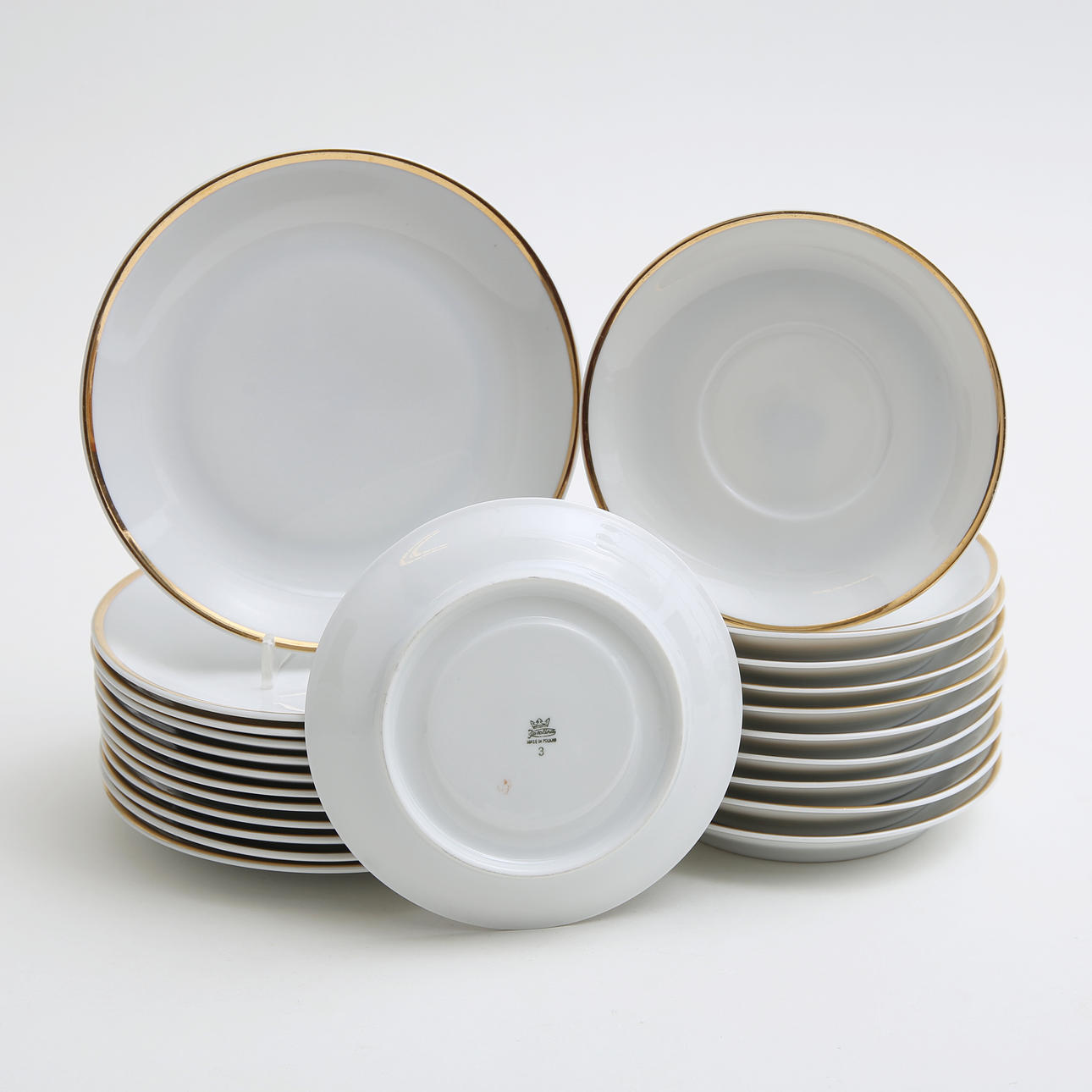 9 cup with 11 barrels, cup height approx. 8 cm, saucer diameter approx. 14,5 cm 12 side dishes, 17.5 cm.