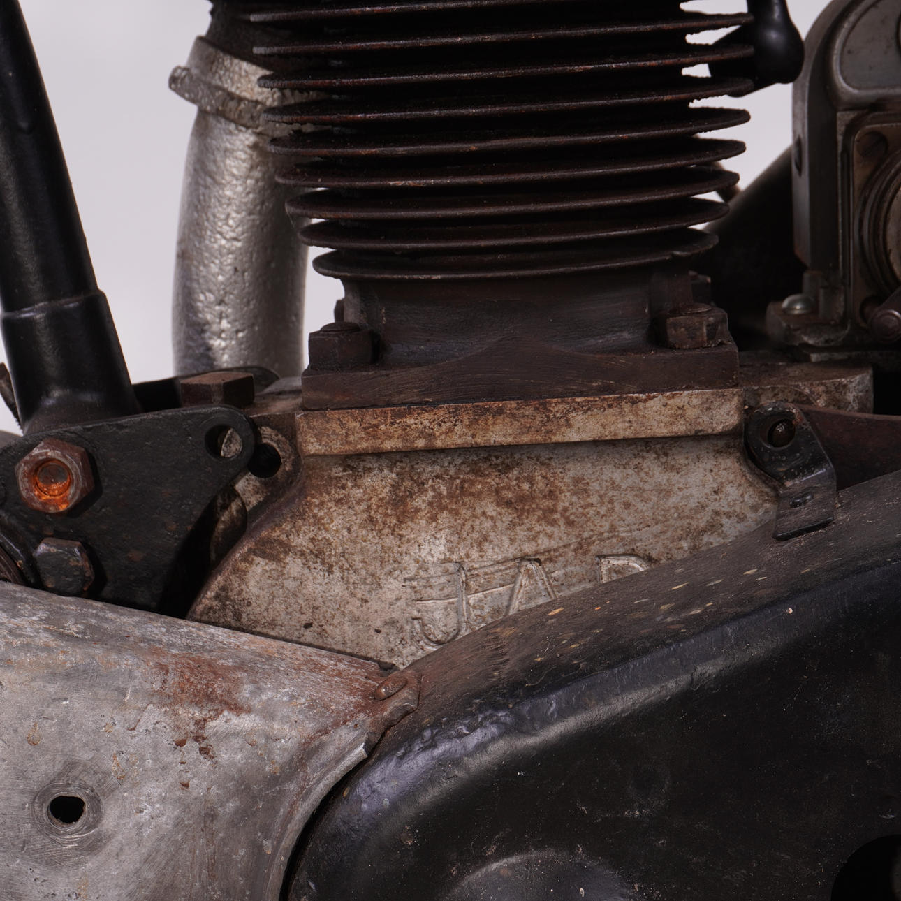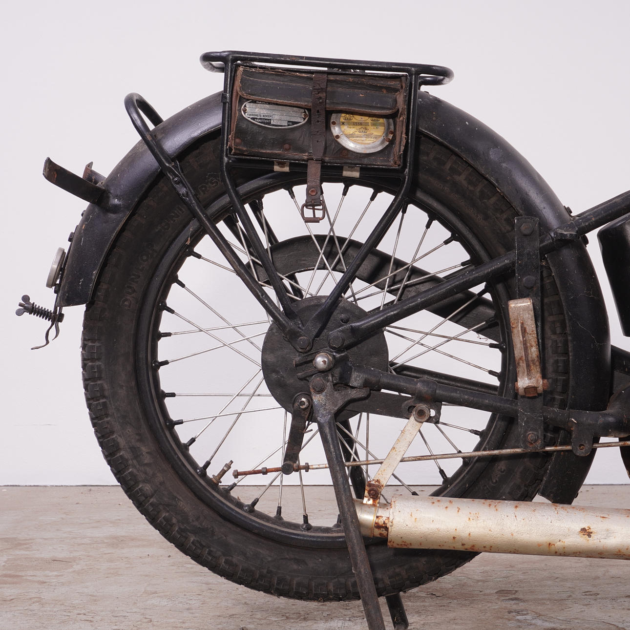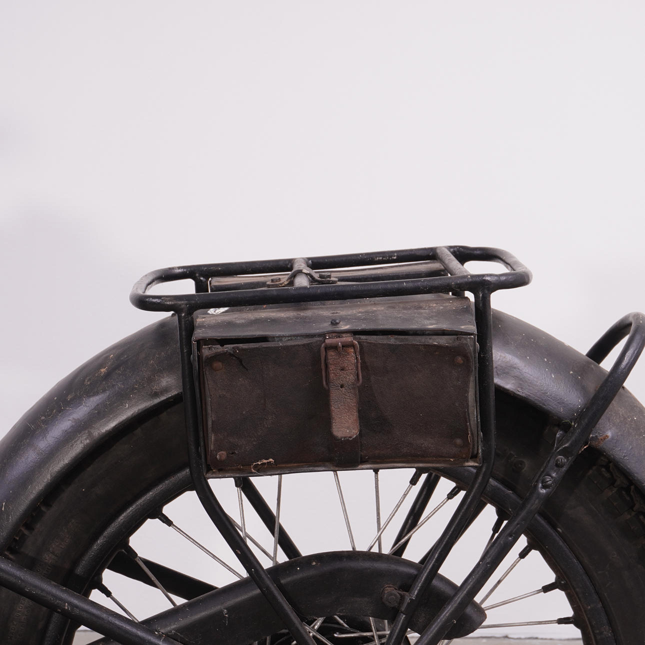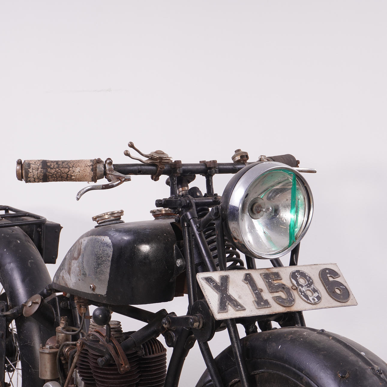 Other: the motorcycle has a tax receipt dated 1959, with registration number X1586 mounted on a tool bag on the luggage rack.
