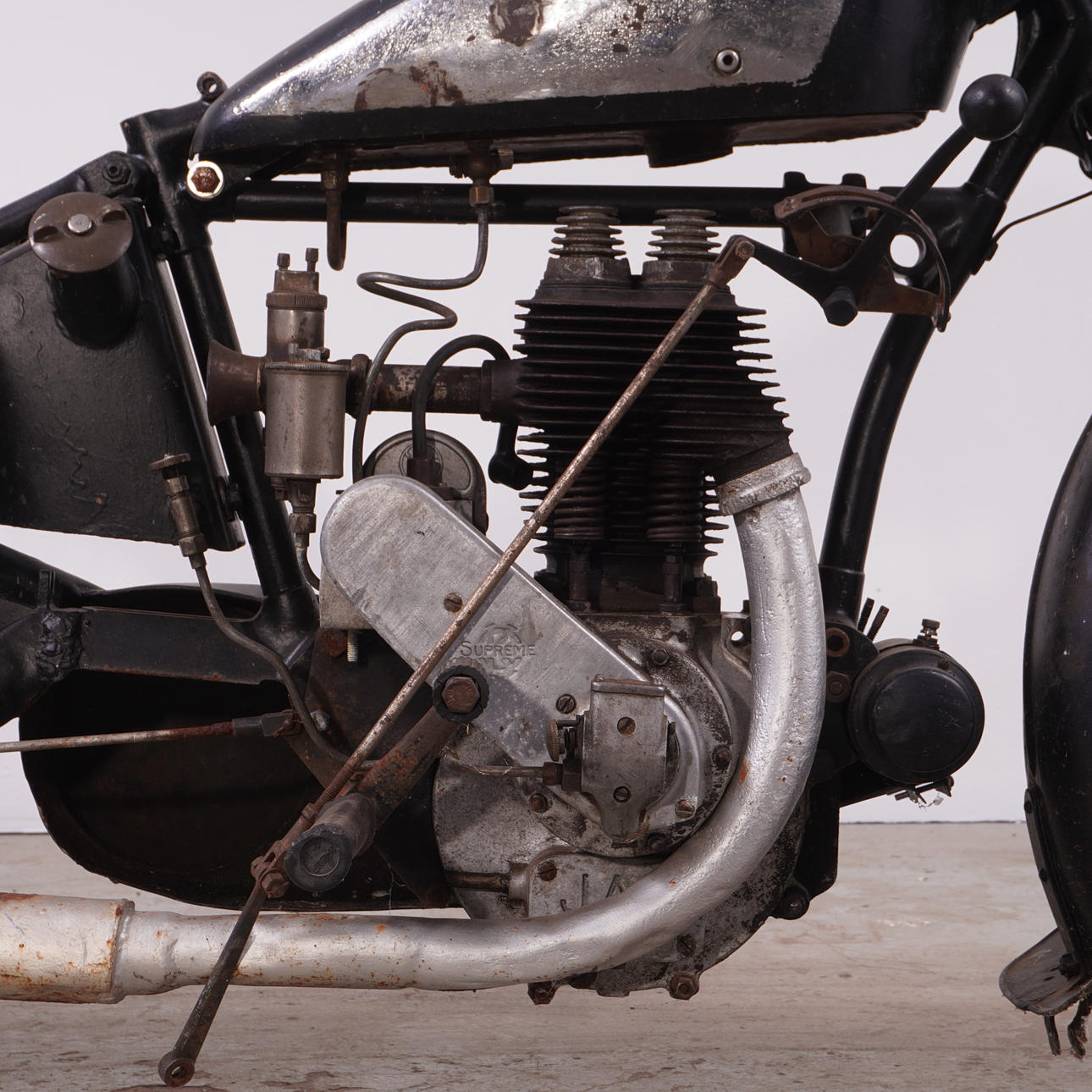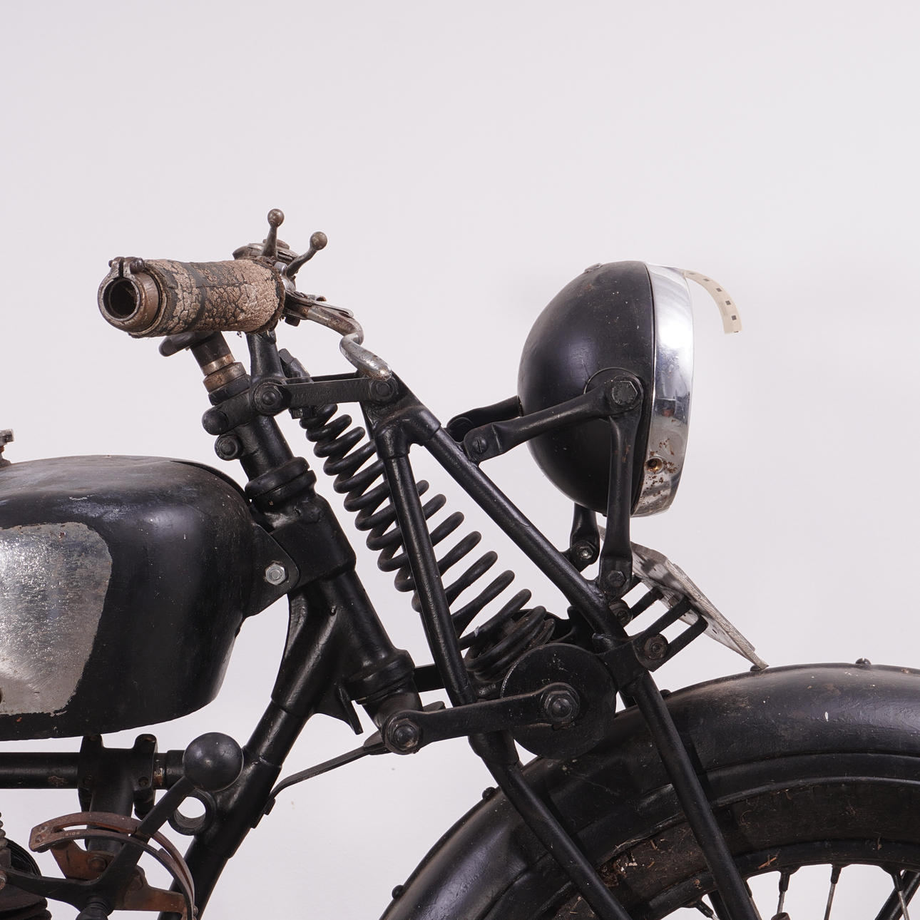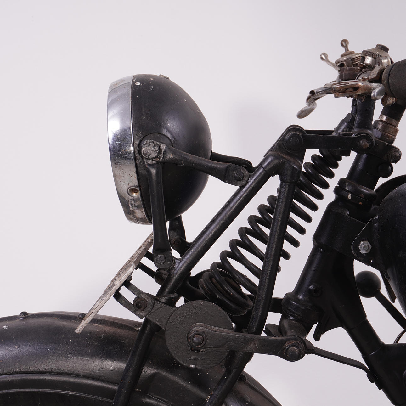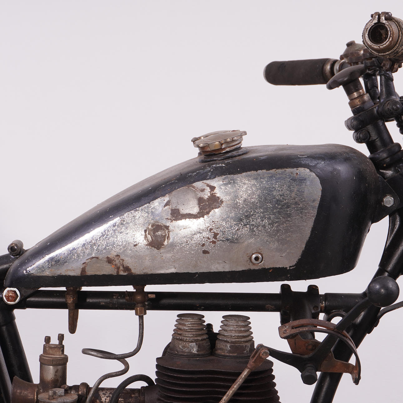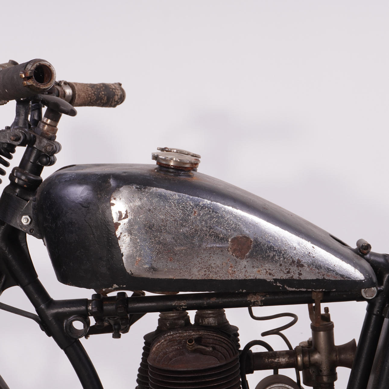 Other: the motorcycle has a tax receipt dated 1959, with registration number X1586 mounted on a tool bag on the luggage rack.