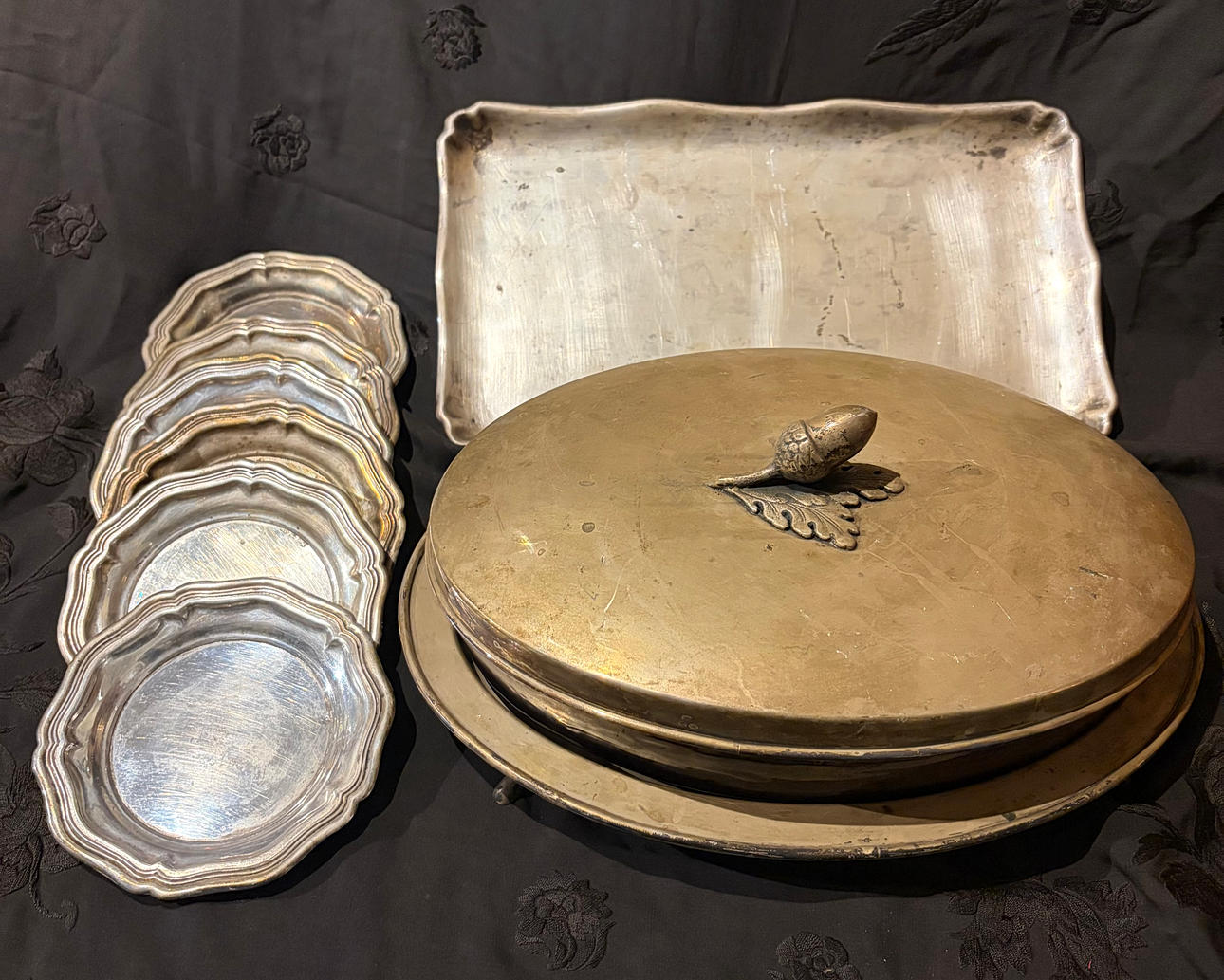 Various silvery metal objects, 20th Century.