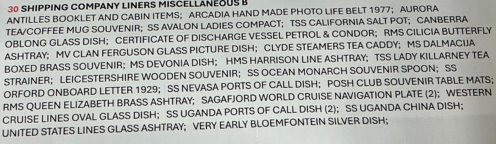 5014936. MIXED SHIPPING COMPANY LINER ITEMS.
