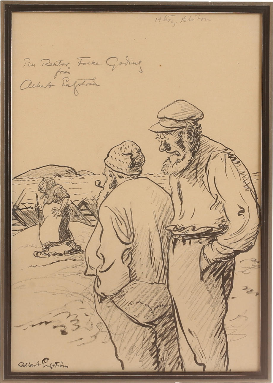 With gift text: To Rector Folke Goding from Albert Engström. Frame approx. 38 x 27 cm.
