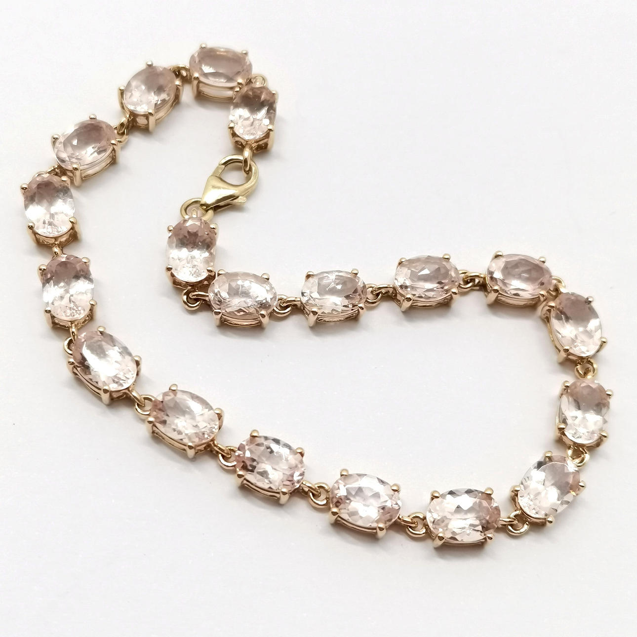9ct hallmarked gold morganite stone set bracelet - 19cm & 8.3g total weight.