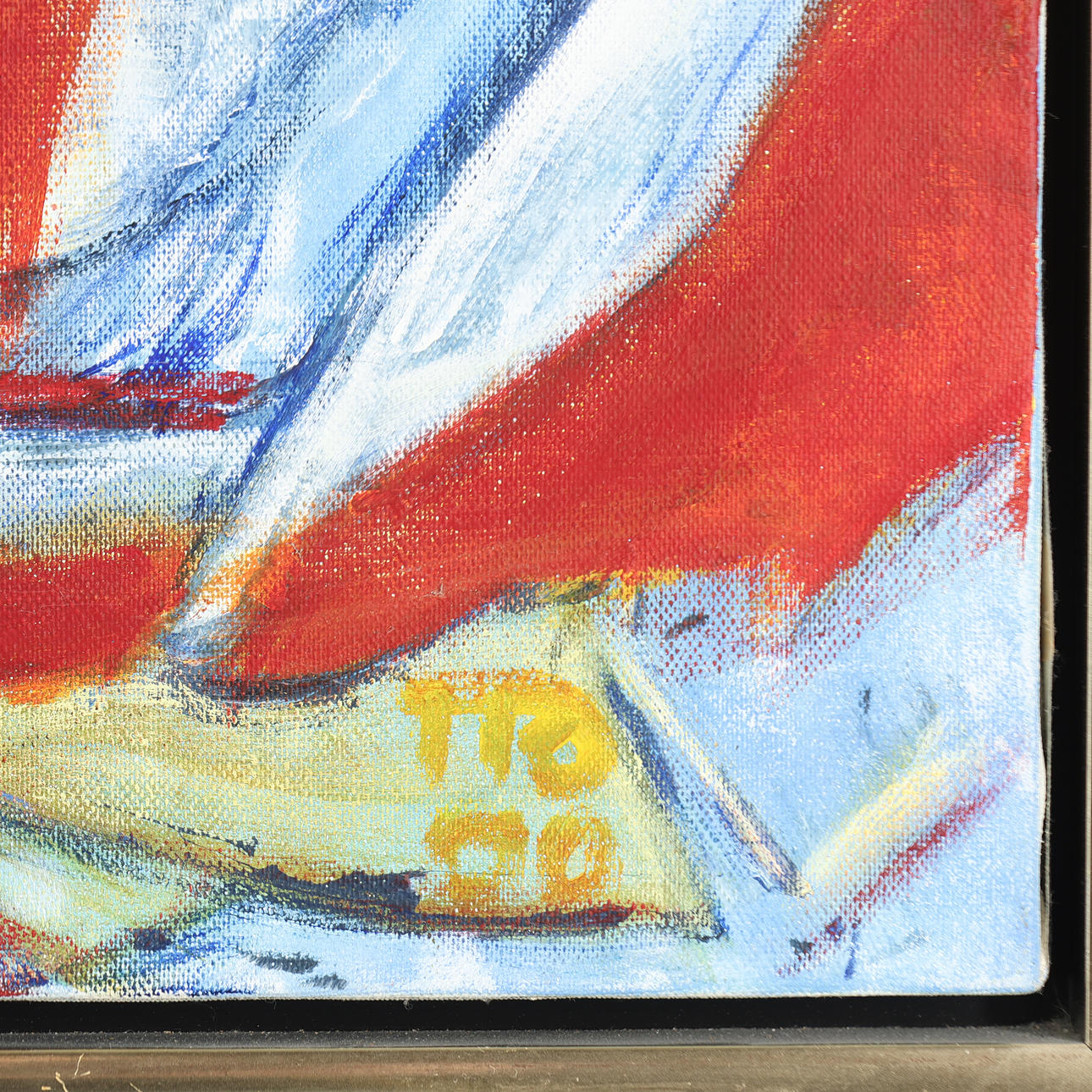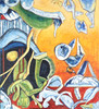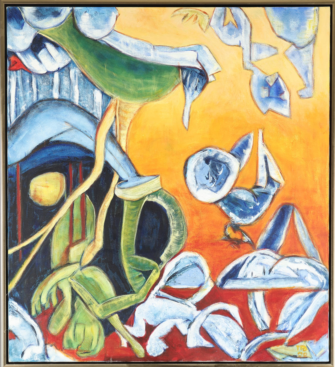 Unknown artist, composition with figures, oil on canvas, indistinctly signed and dated. H. 100 x 90 cm, framed 104 x 94 cm.