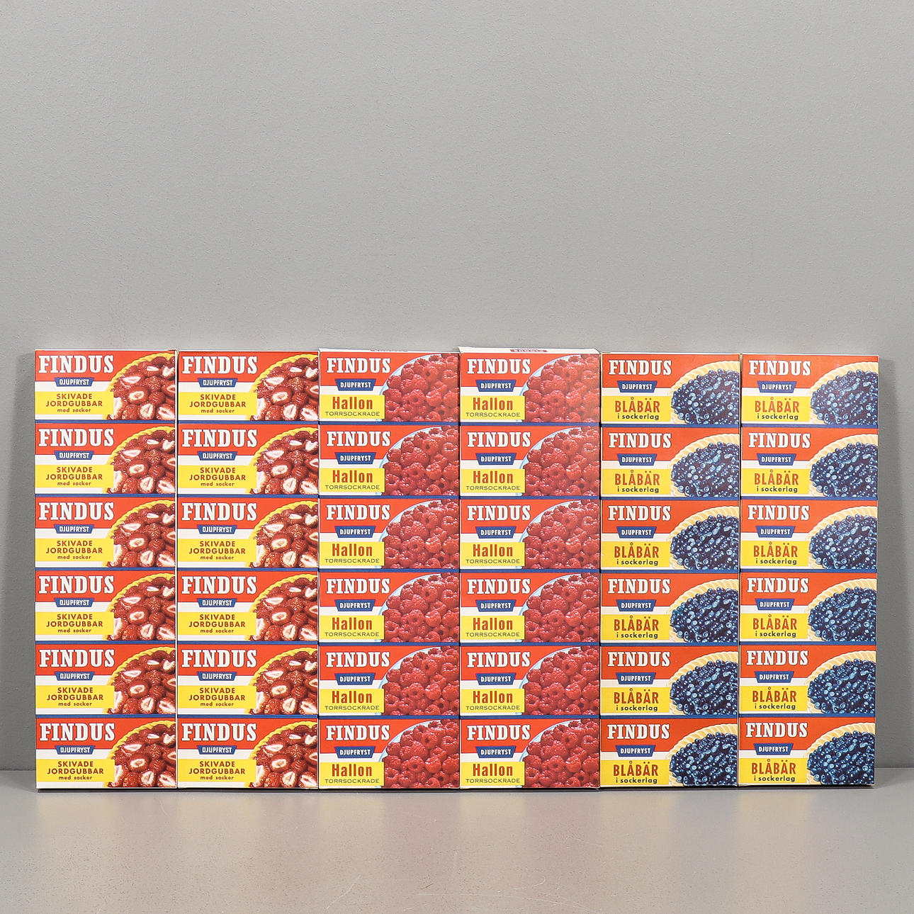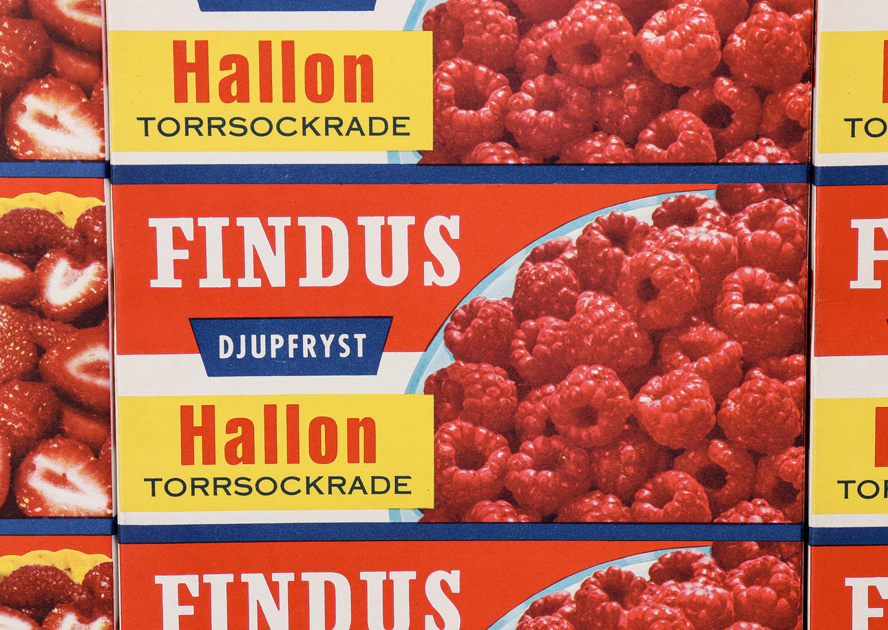 SKYLMATERIAL cardboard, Findus deep-frozen berries.