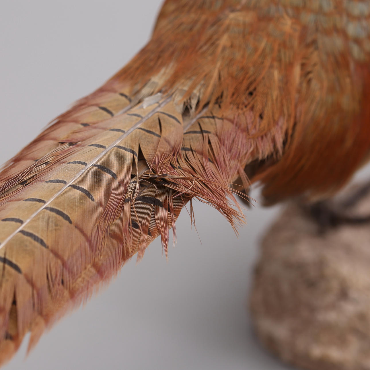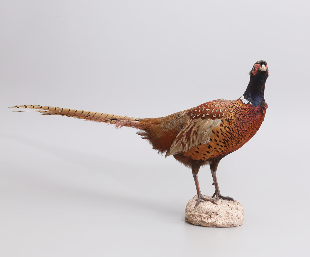 Pheasant stuffed Mounted on artificial pulp Total height approx. 43 cm, length approx. 77 cm.