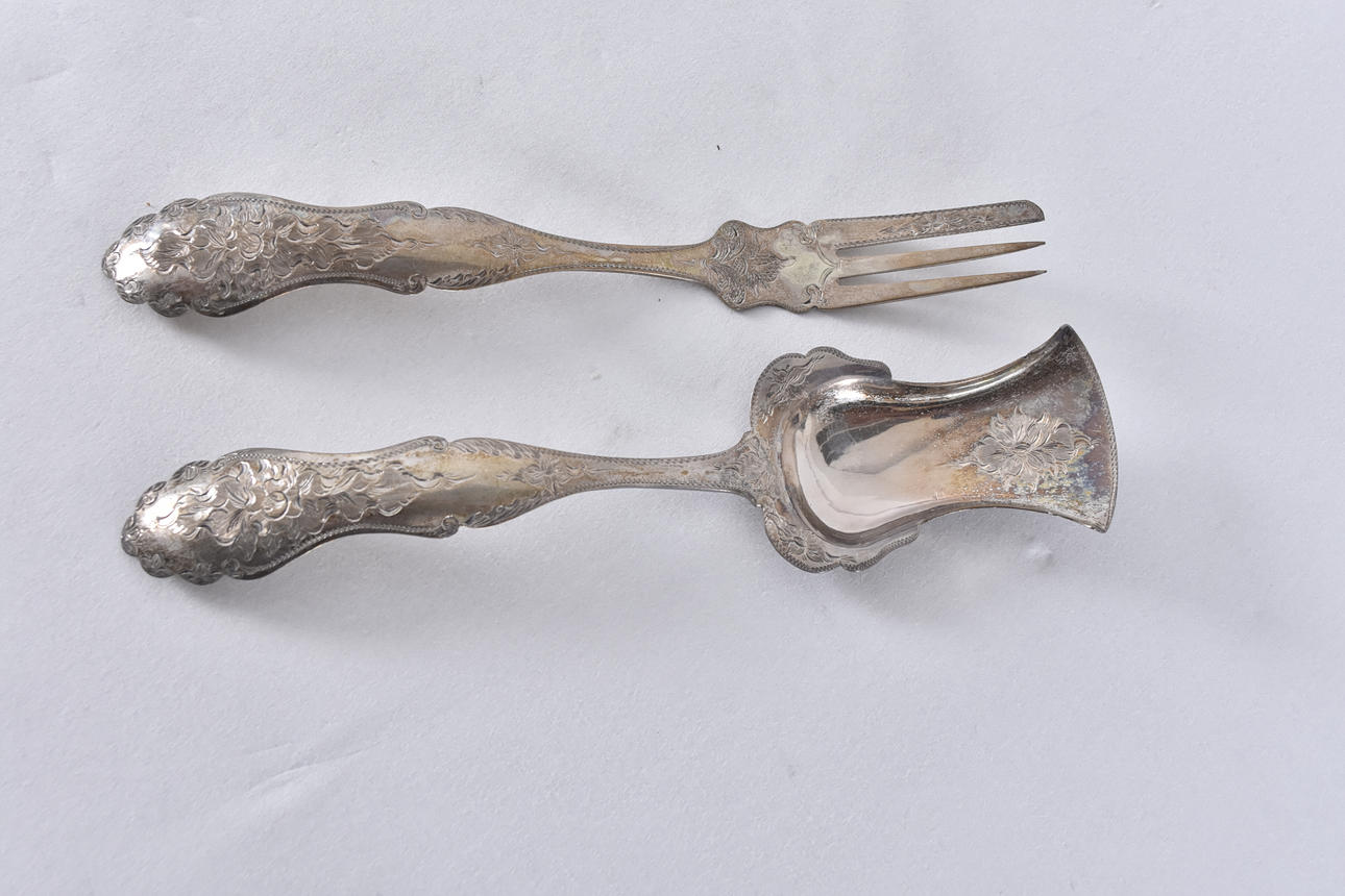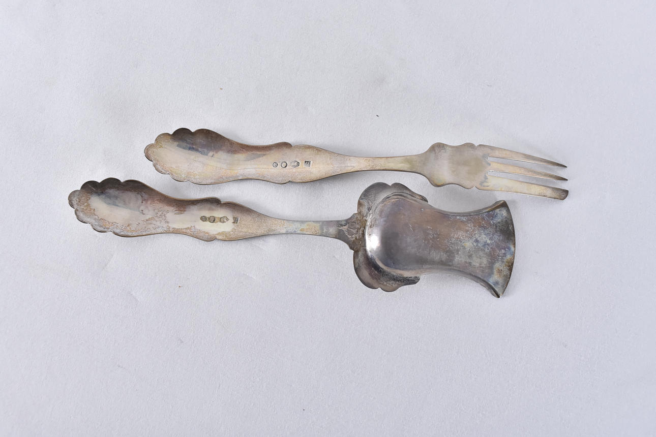 COOKIE SPOON AND FORK, silver, Holland 1863.