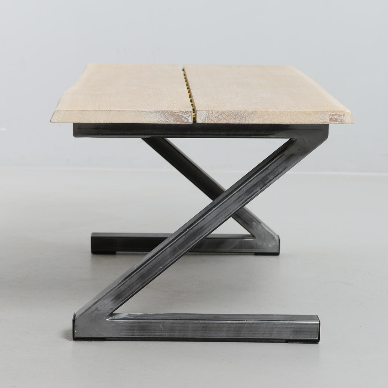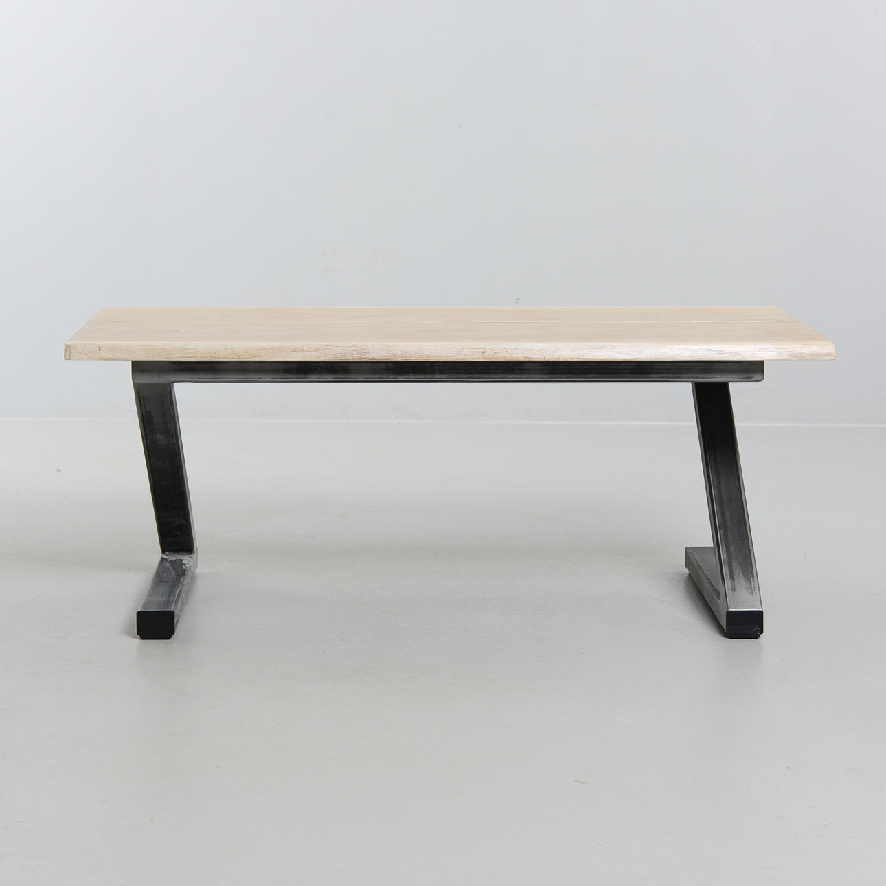 Oak and steel. Length 120 cm. Width 57 cm. Height 49 cm.