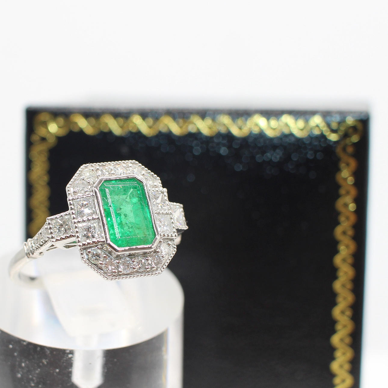EMERALD & DIAMOND ART DECO STYLE RING.