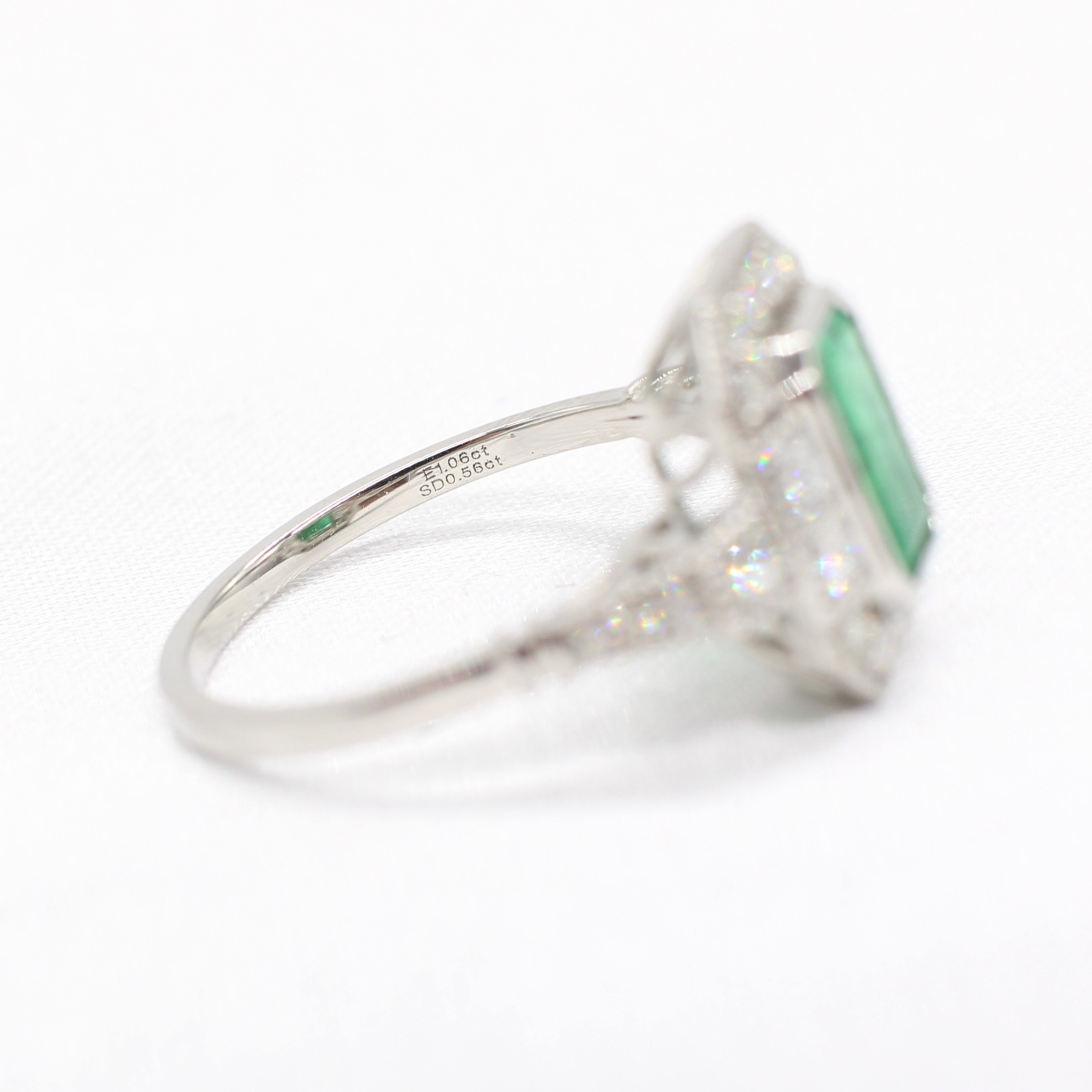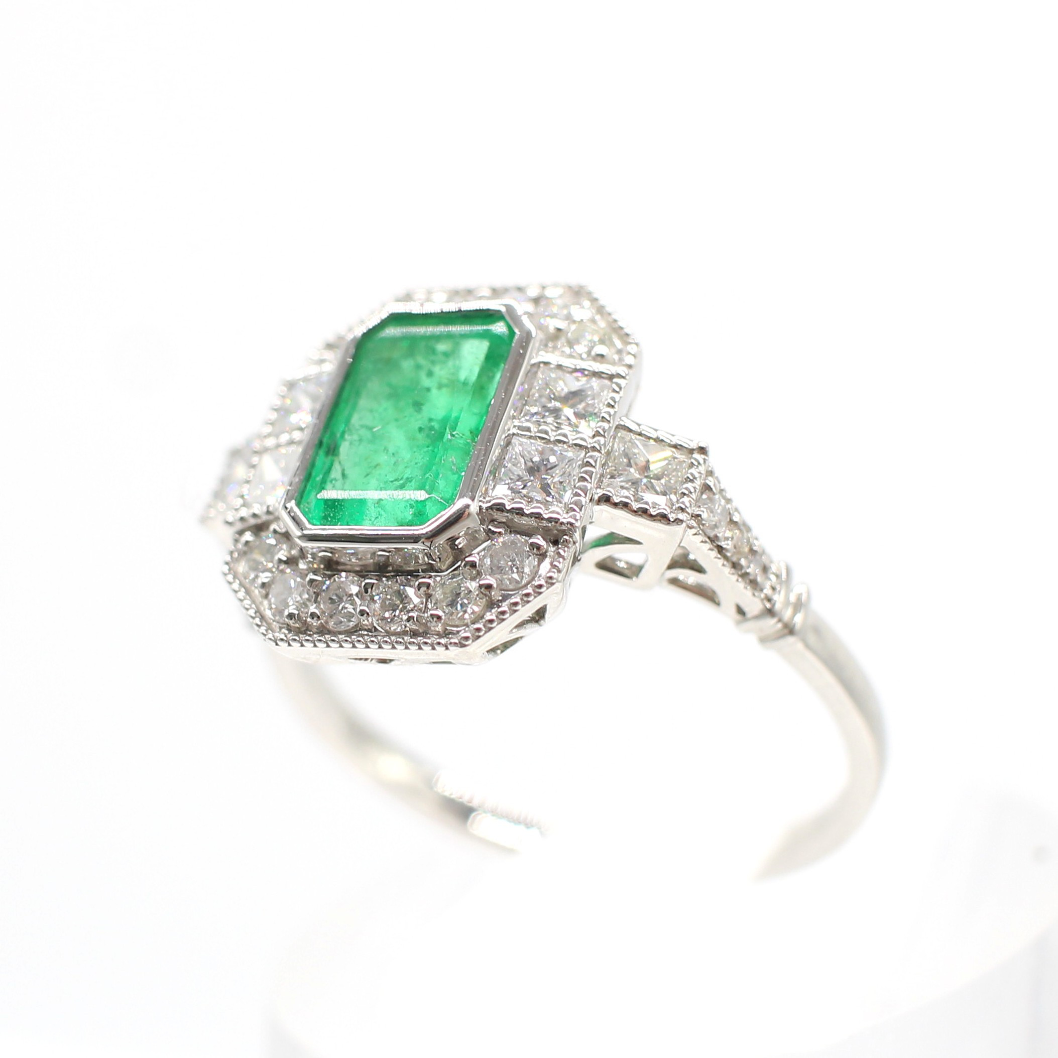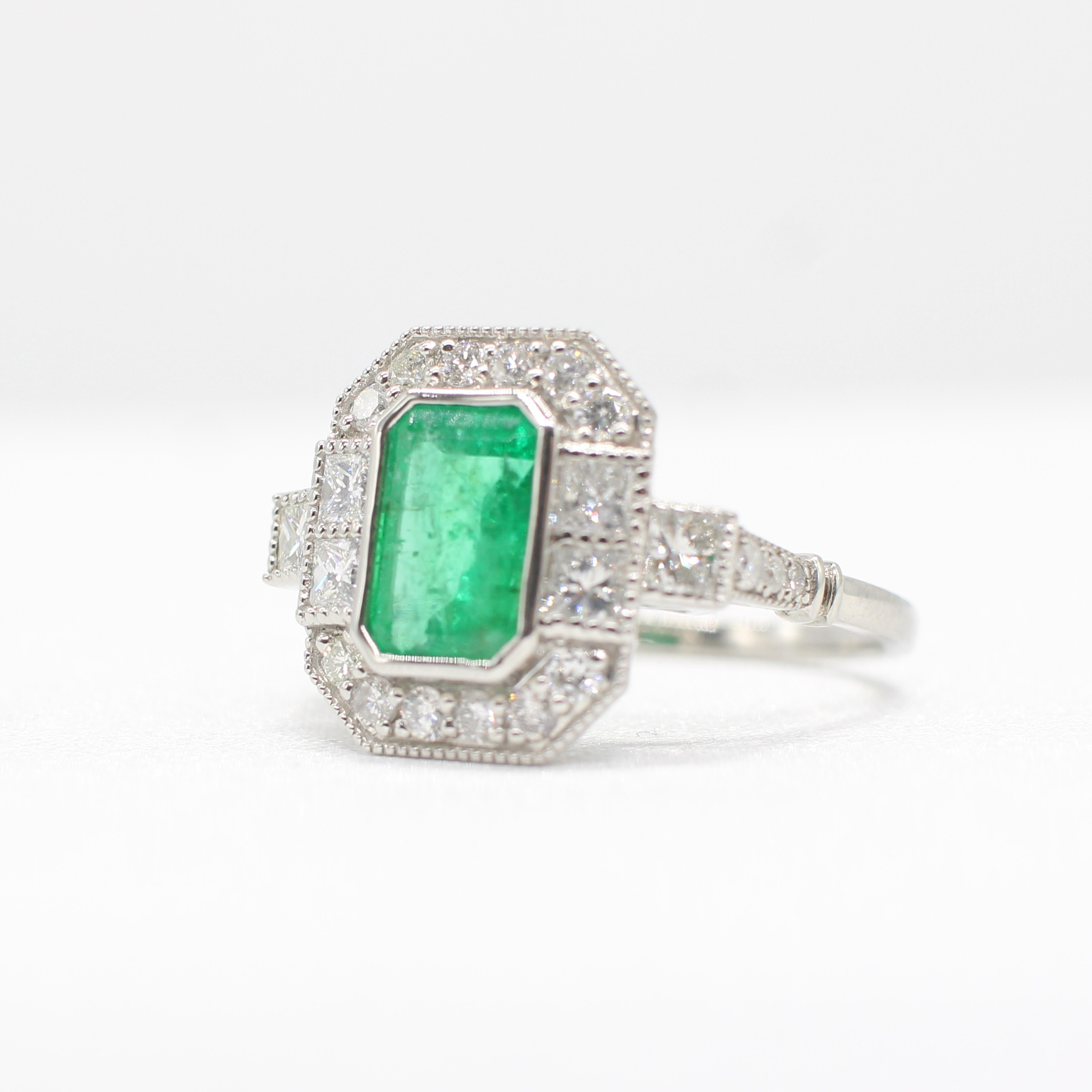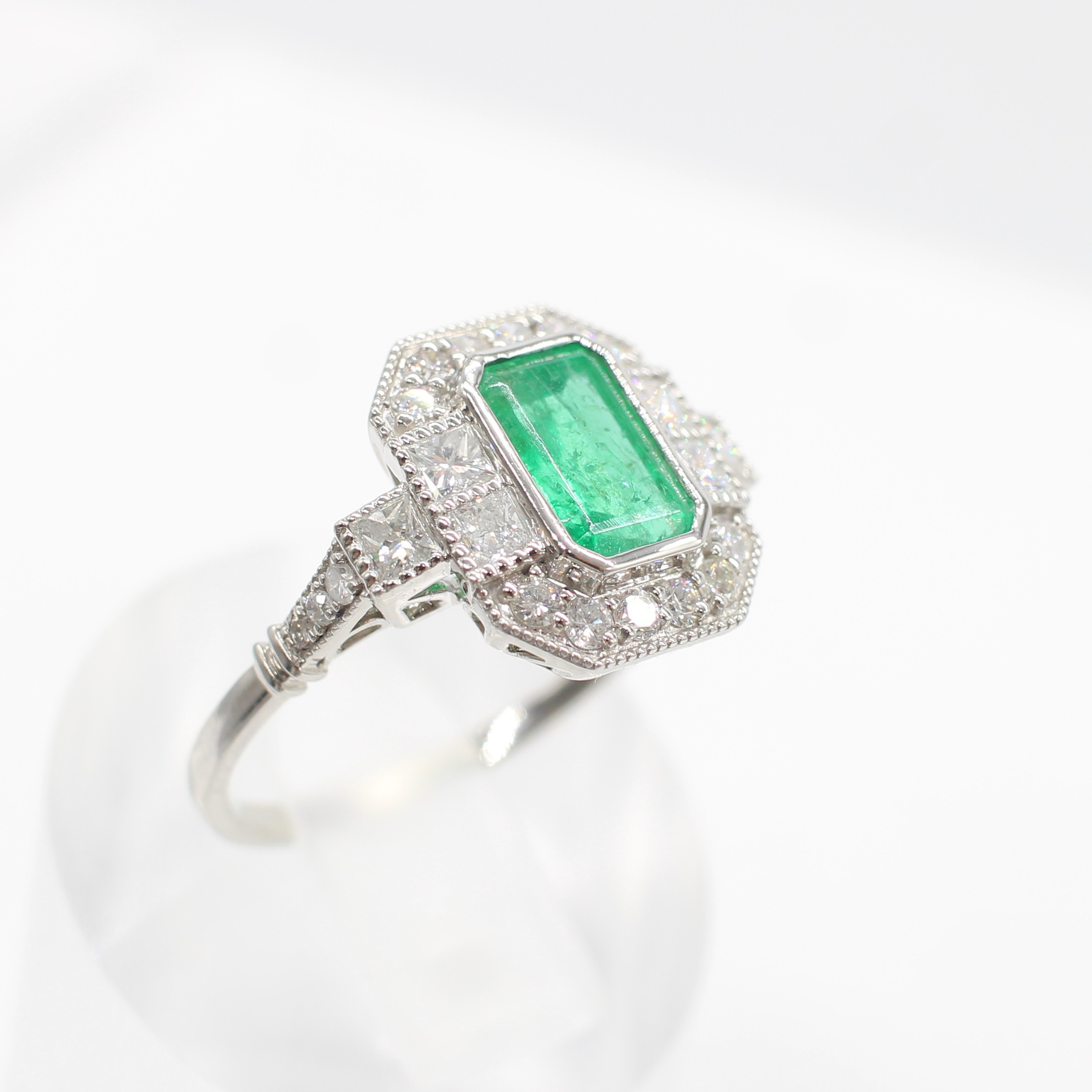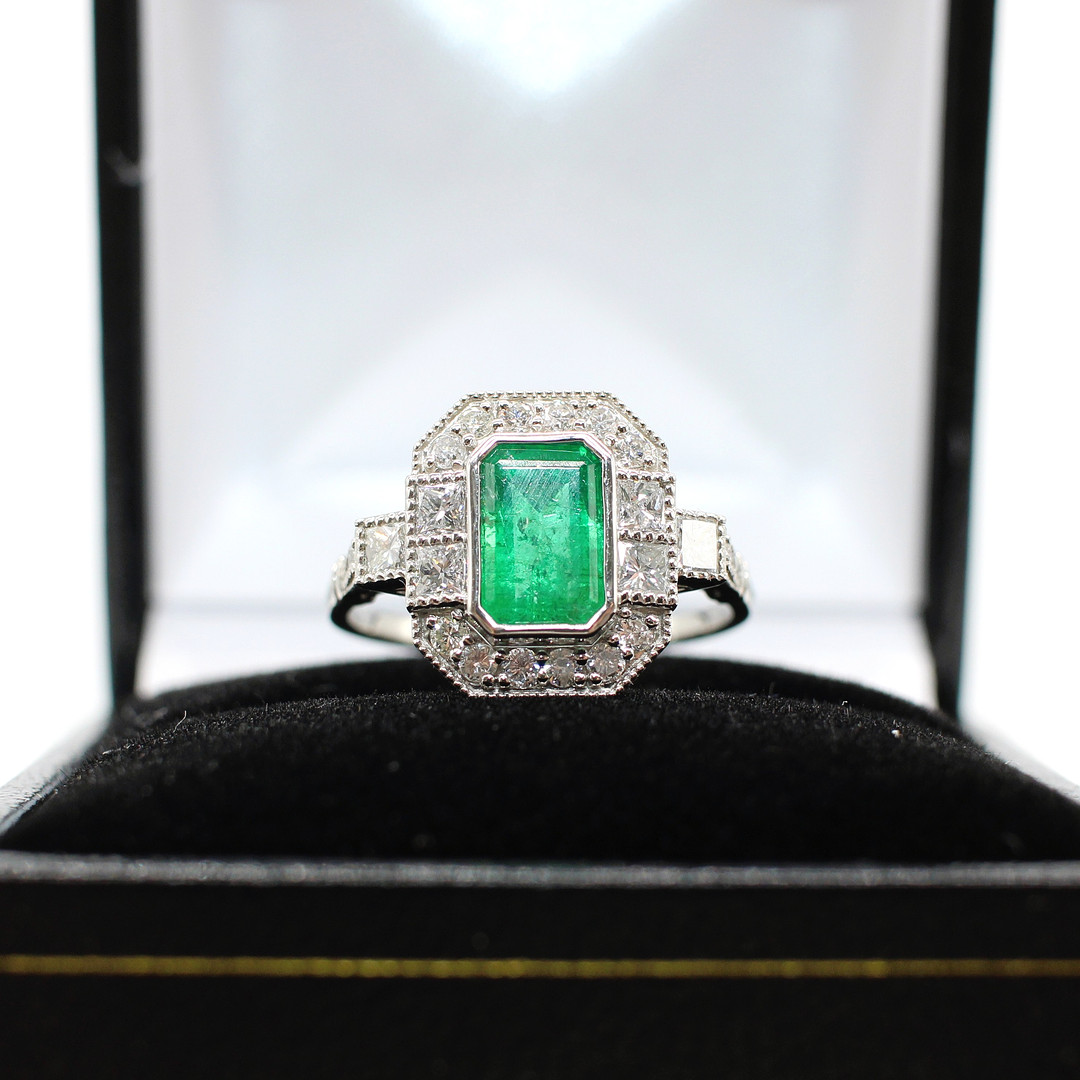 5015401. EMERALD & DIAMOND ART DECO STYLE RING.
