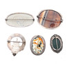 five silver mounted brooches including moss agate, malachite, banded agate and a regimental brooch with motto "Stand Fast" etc.