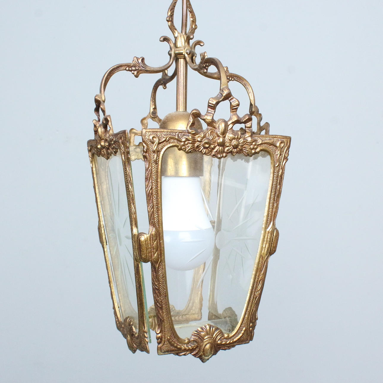 golden lantern/ceiling light.