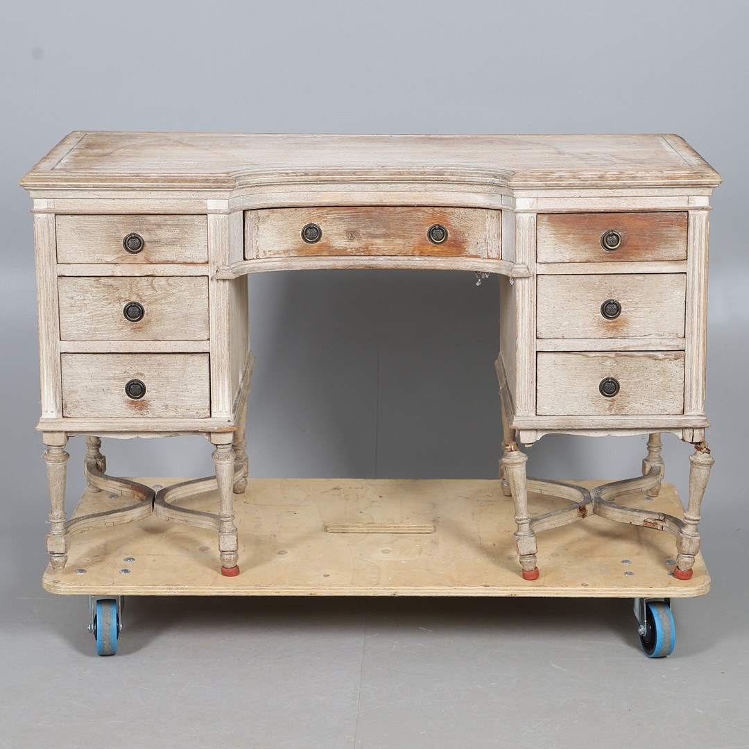 5015672. A LIMED WOOD PEDESTAL DRESSING TABLE.