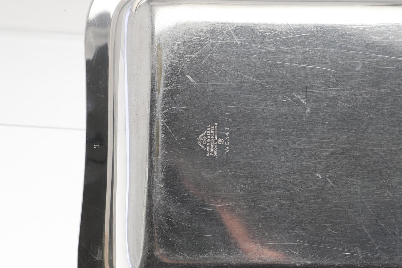 General marks and minor scratches. Some discolouration to the plate, particularly to one of the rectangular dishes. Handles slightly loose. Other imperfections. See online images.