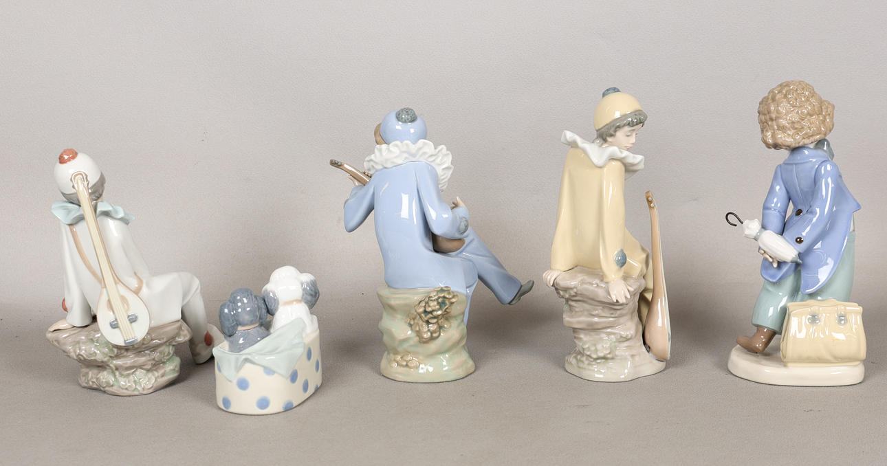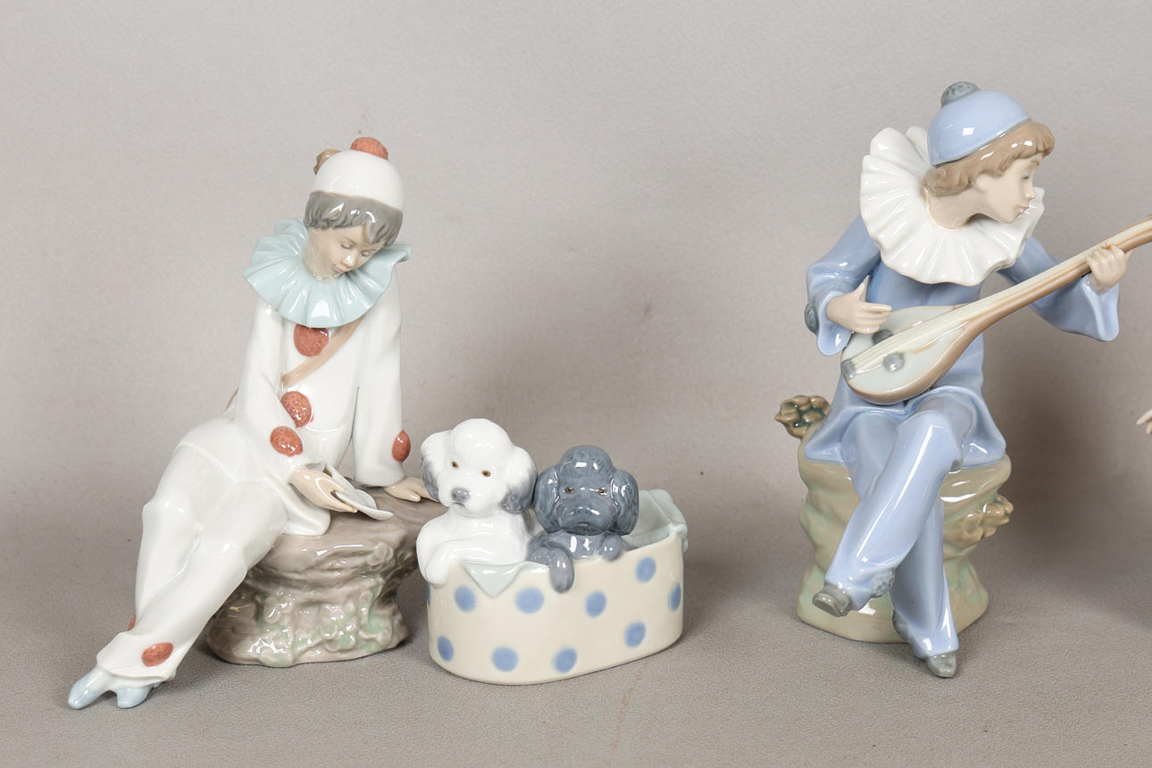 To include two poodles and dots, Perriot strumming, Wandering minstrel, love letter, travelling man, the largest 20cm high.