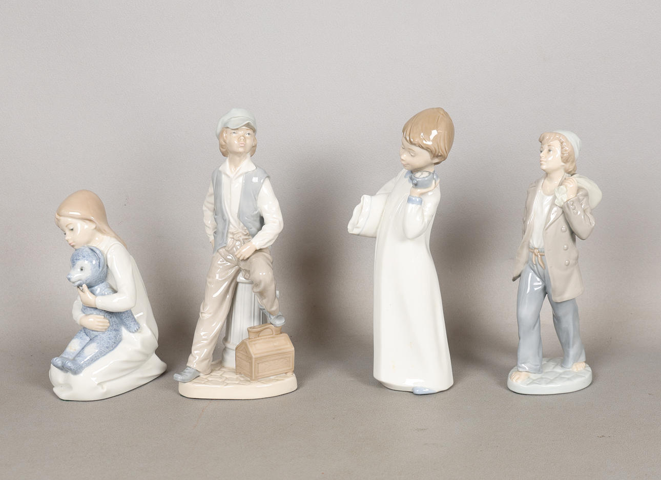 To include girl with teddy bear, Shoe shine boy on a fire hydrant, off to bed, barefoot boy with bag, the largest 25cm high.