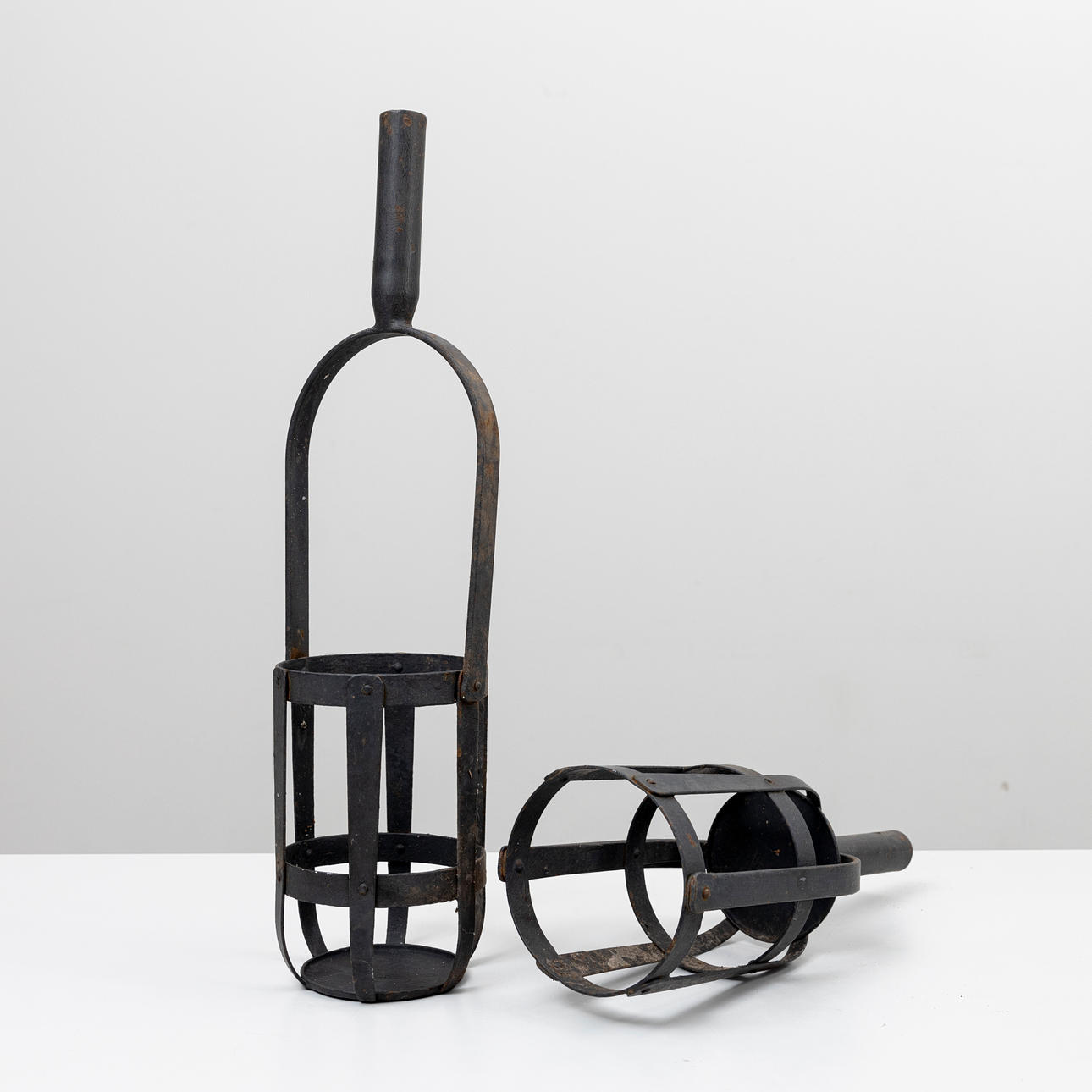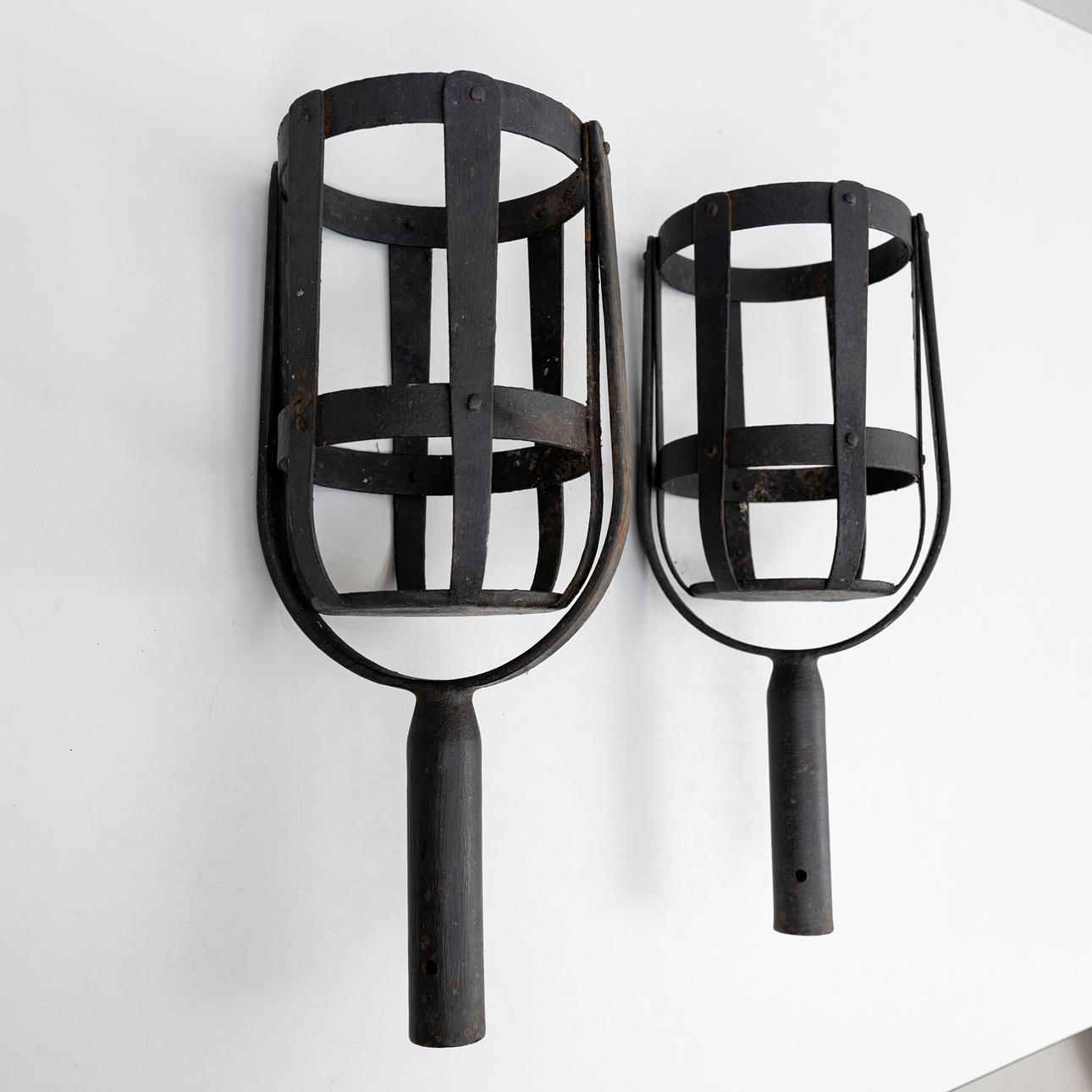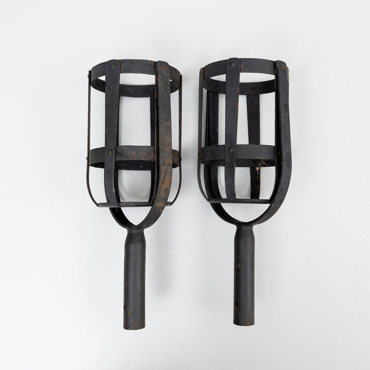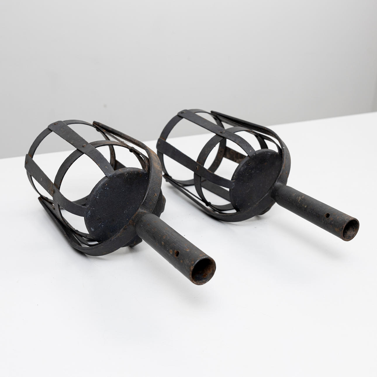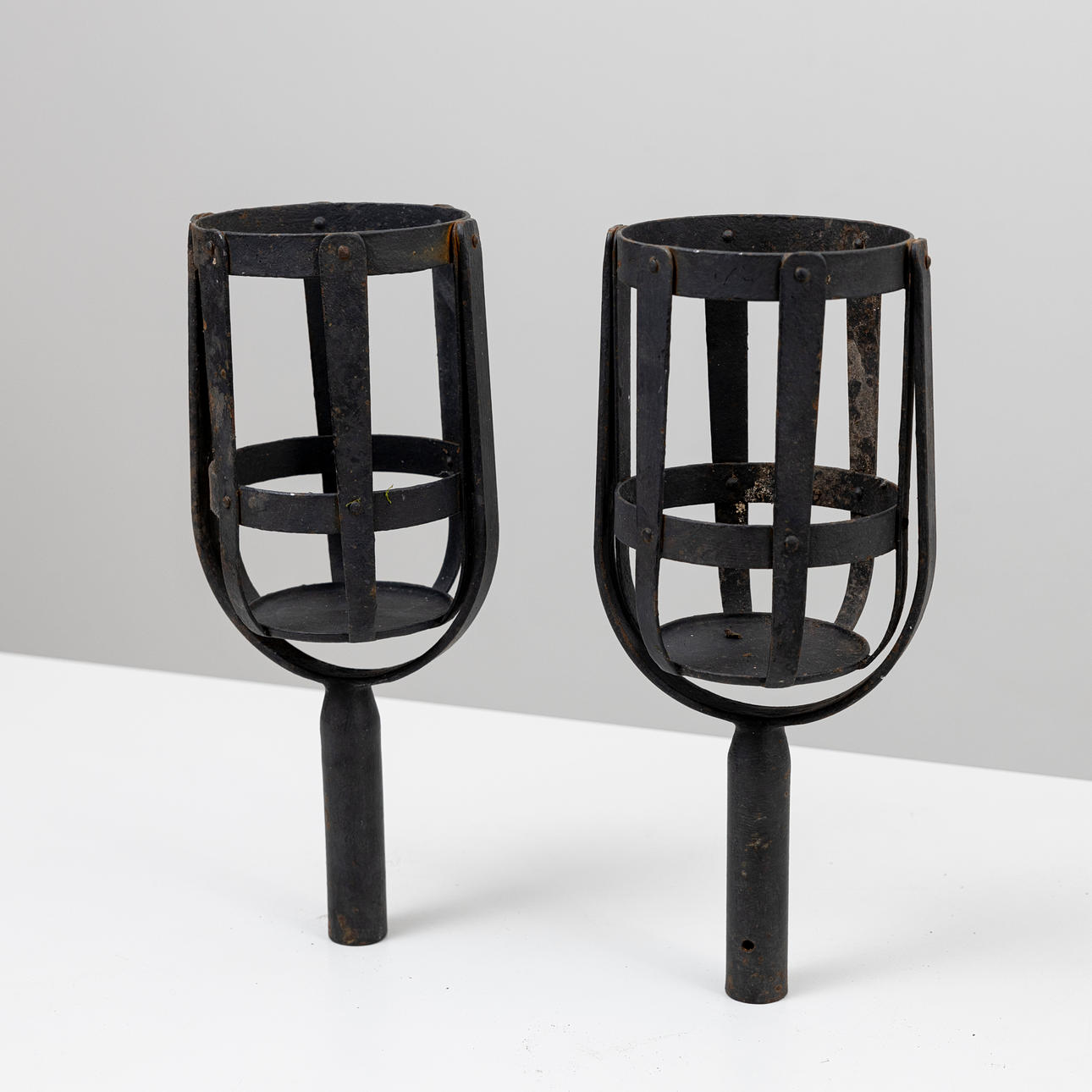 Two iron firebaskets, 20th century.