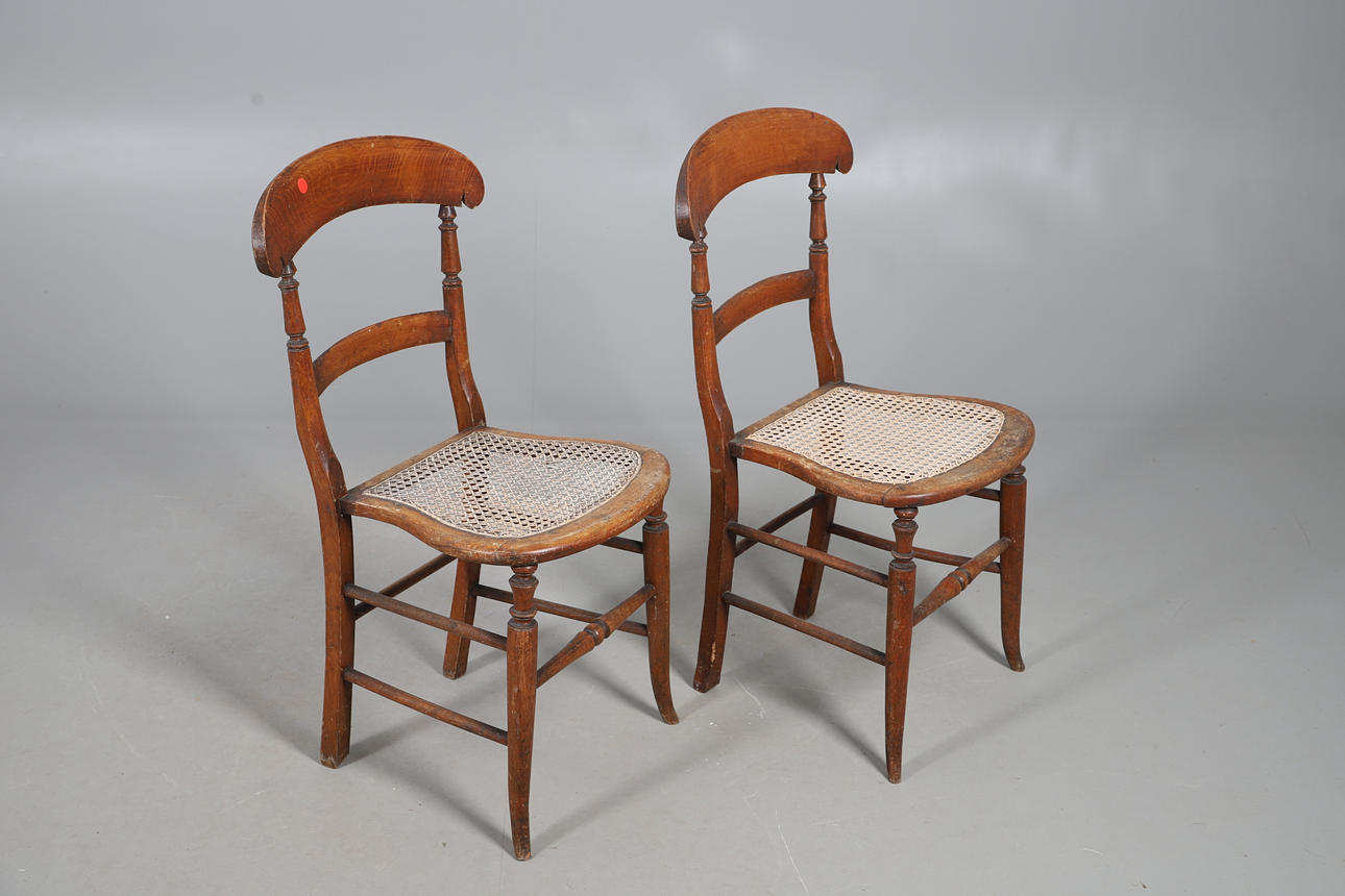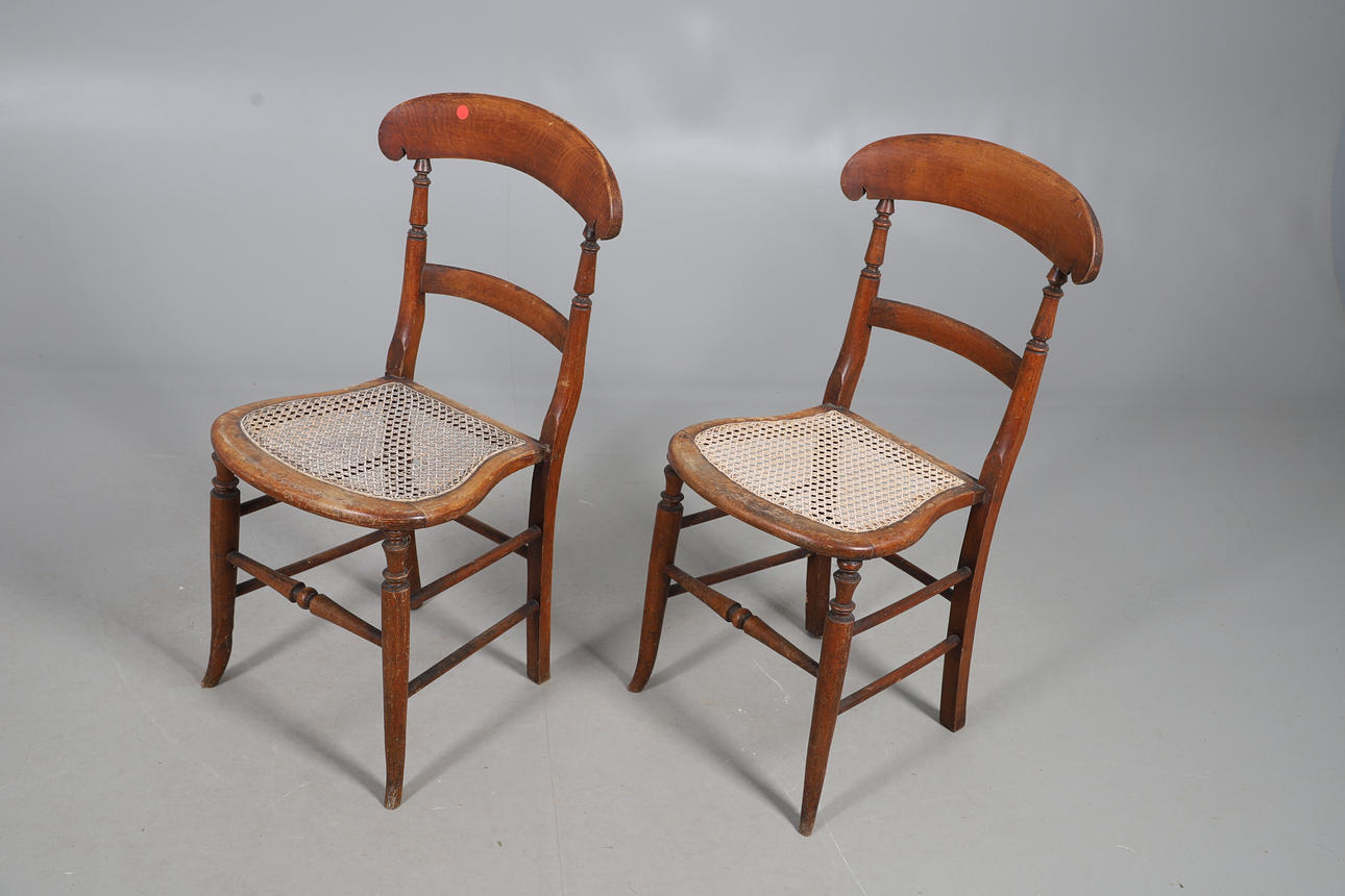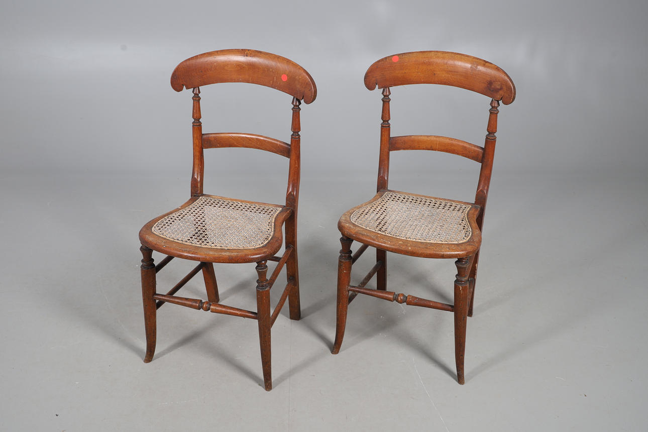 Wear commensurate with age and use. Scuffs, scratches and a hairline split to table, chairs worn and parts faded with occasional holes to canework. See online images.