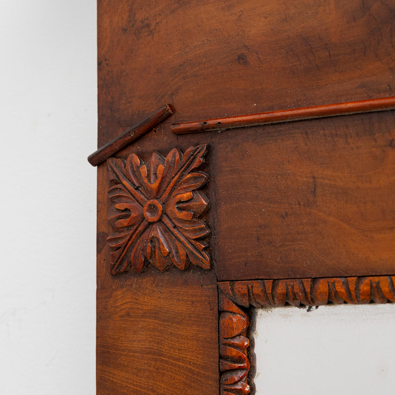 Decor part missing, cracks, stain-damaged glass.
