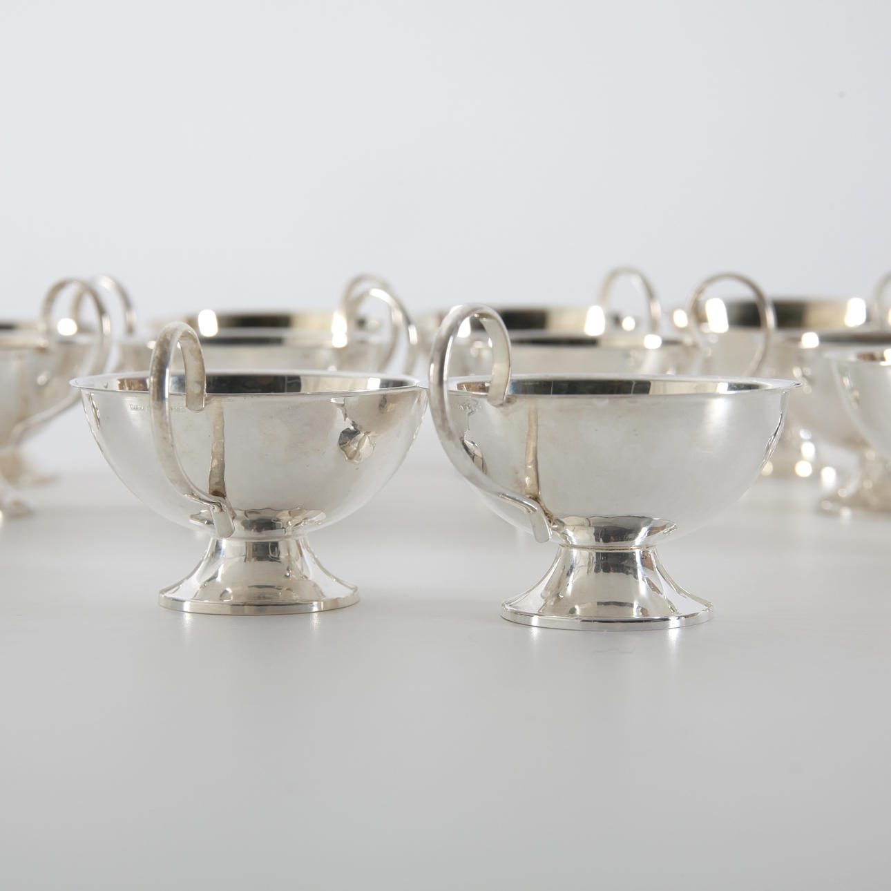 12 punch cups, silver with gilt interior Hallmarked Cesons and K&EC respectively, 1970s Height approx. 5 cm