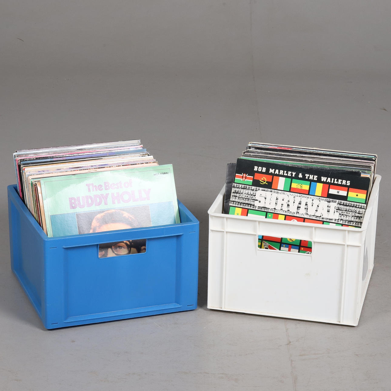 Blah ABBA, Bob Marley, David Bowie, Buddy Holly, Pink floyd, The Boppers, Dr Hook, The Eagles, Bryan Ferry, Ted Gärdestad, Roxy Music, Jerry Willams. Some Greatest Hits records. Two plastic backs are included.