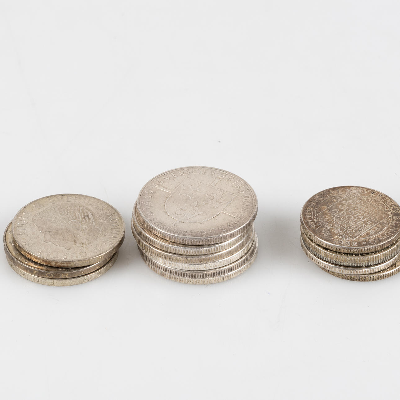 6 pcs 5-kronor from 1935 5 2-crowns from 1948, 1953, 1954, 1955 12 2-crowns from 1897, 1898, 1907, 1921, 1932, 1938.