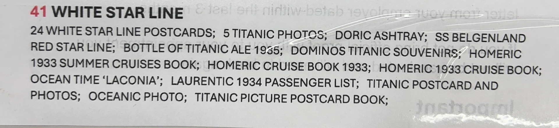 5016605. WHITE STAR LINE ITEMS.