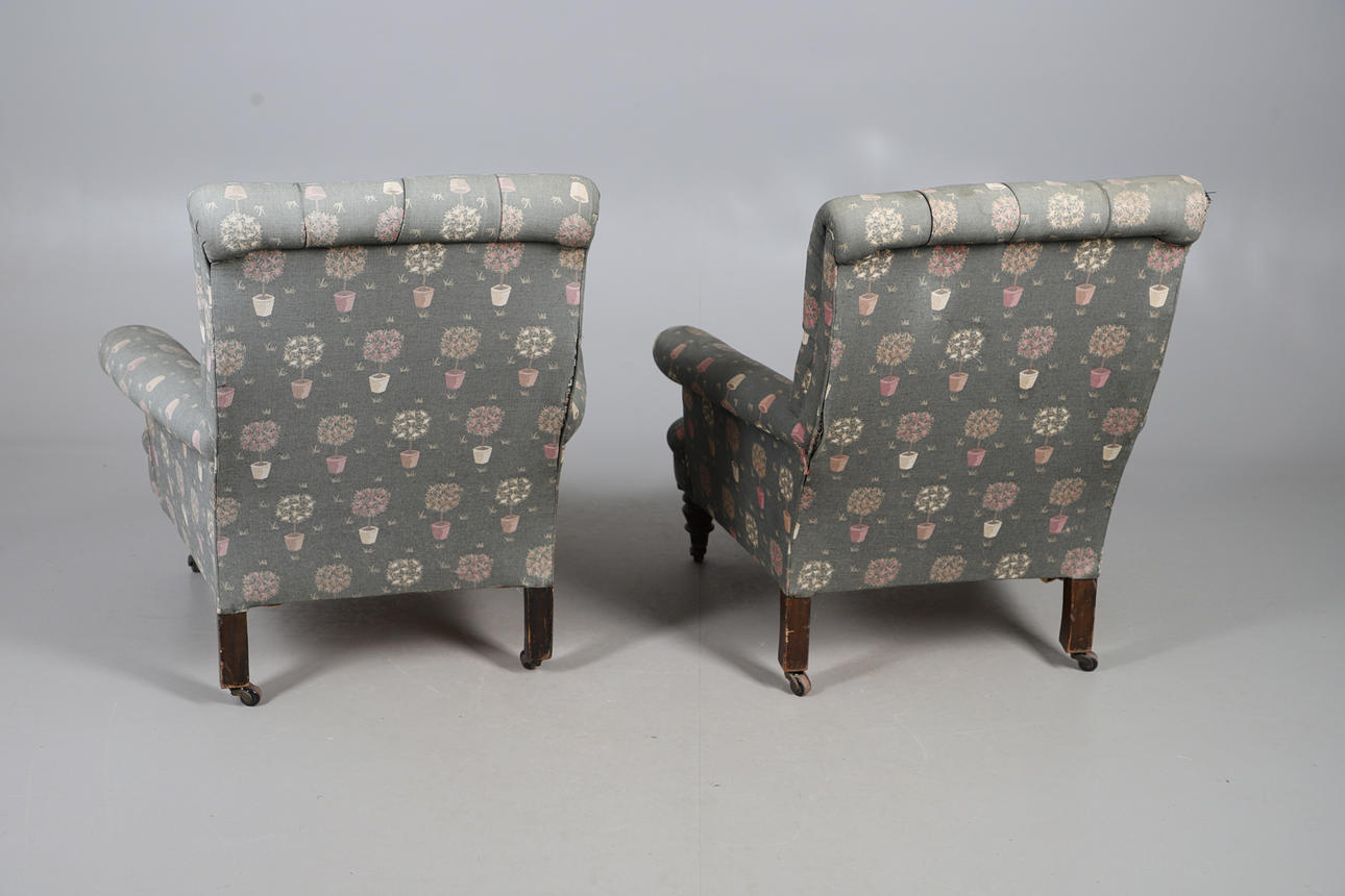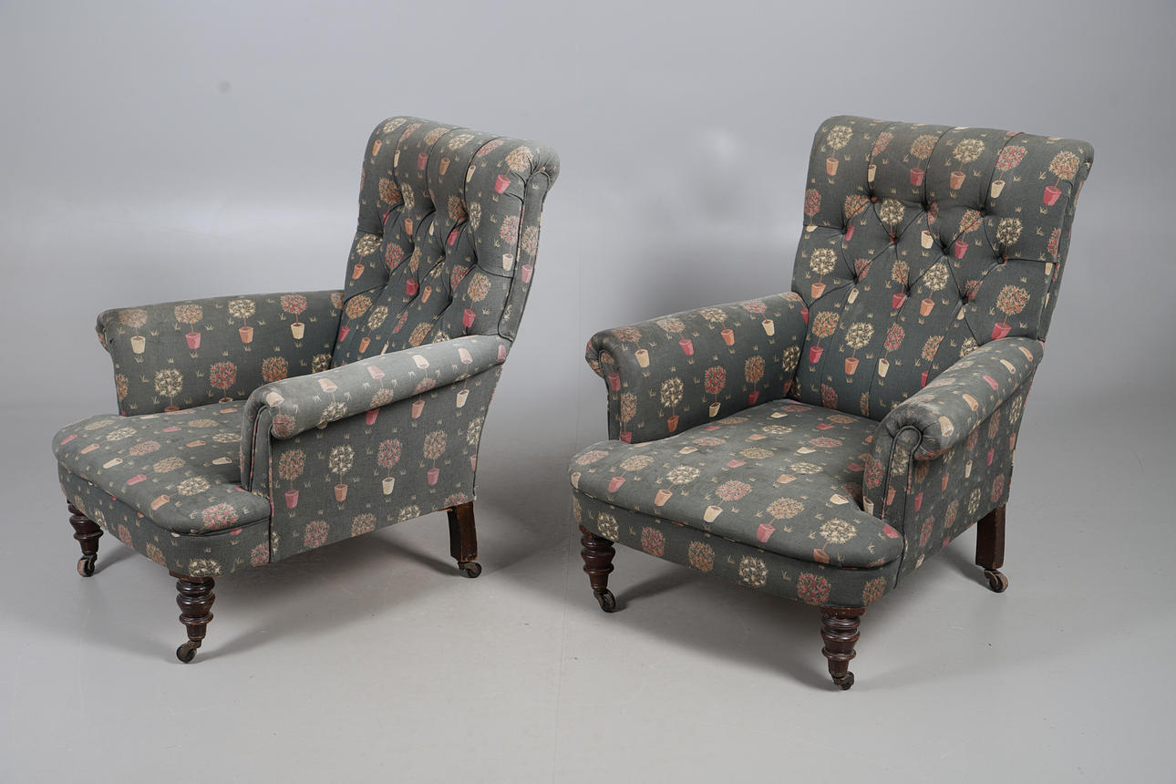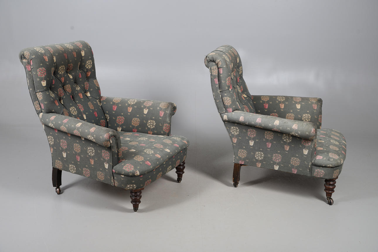 5016711. PAIR OF VICTORIAN BUTTON BACK ARMCHAIRS.