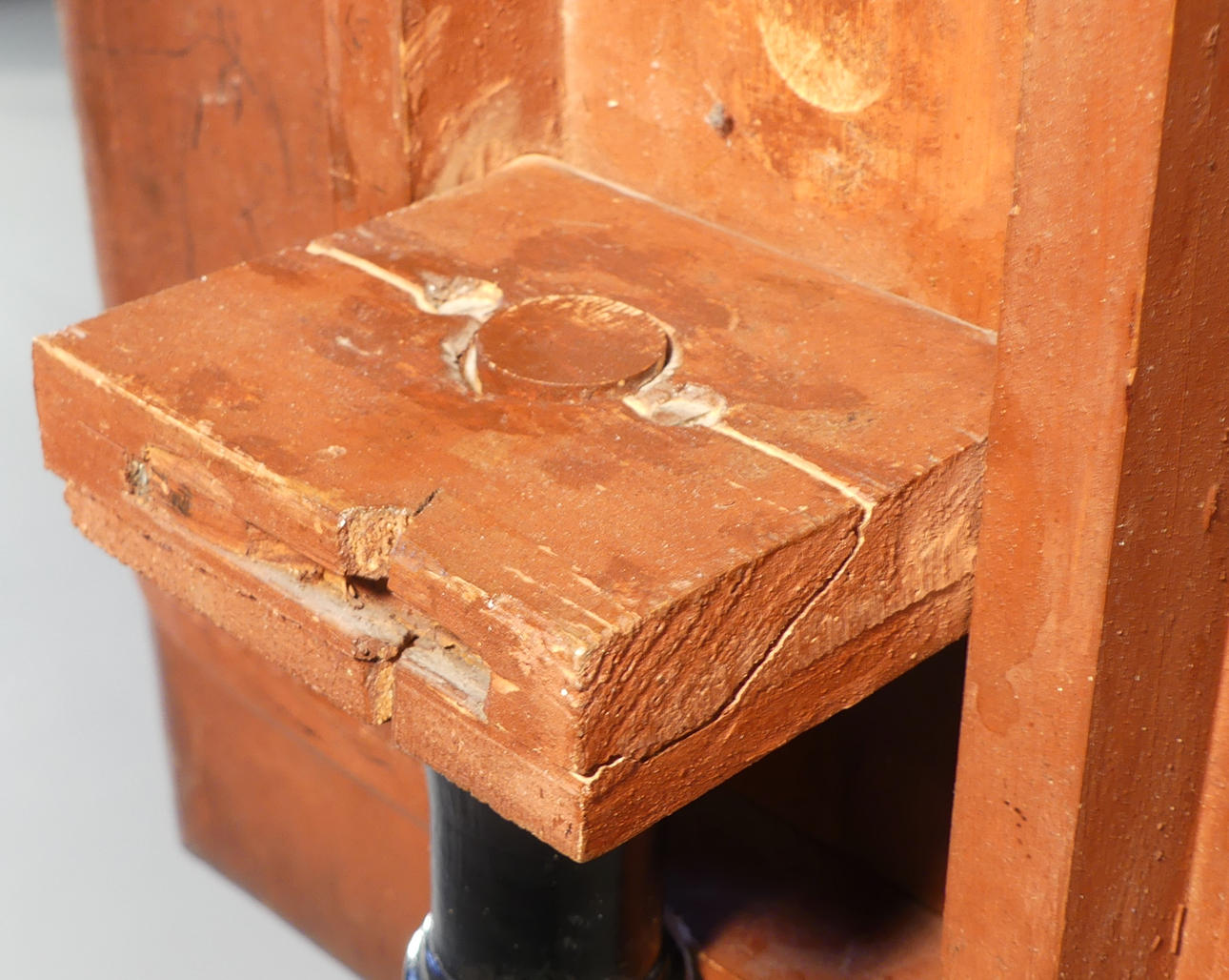 Slightly stiff to unfold, cracked at the mount see image, use- and age-related wear.