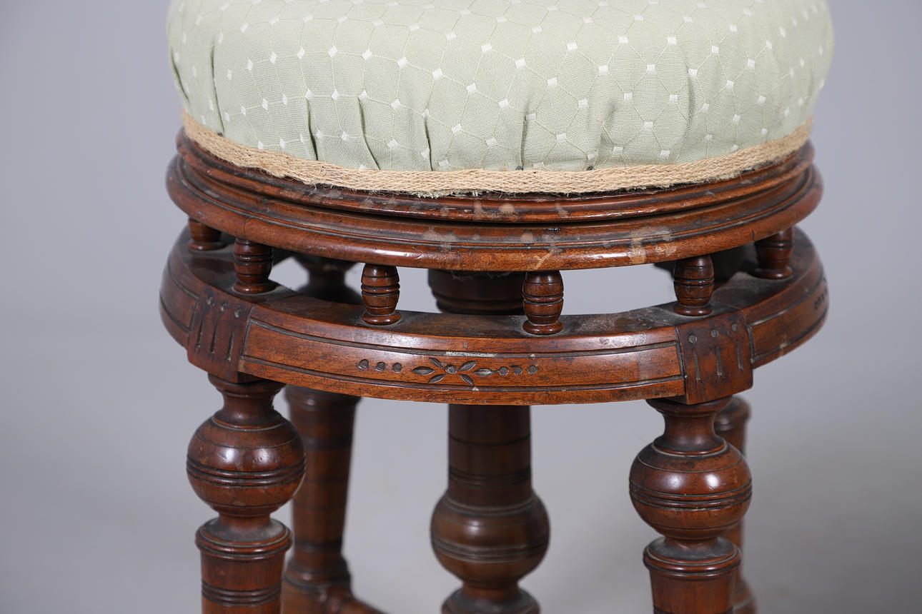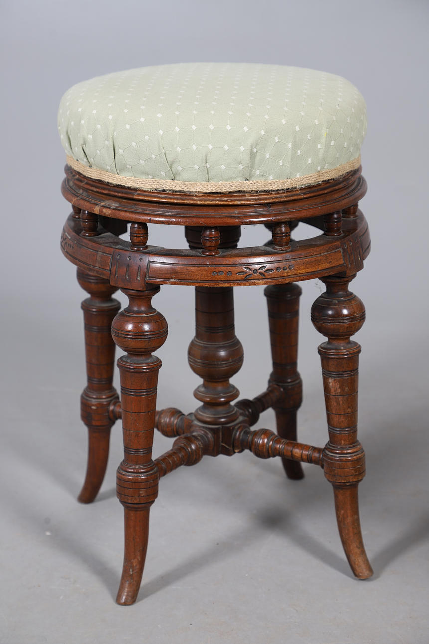 5016876. TWO VICTORIAN ADJUSTABLE PIANO STOOLS.