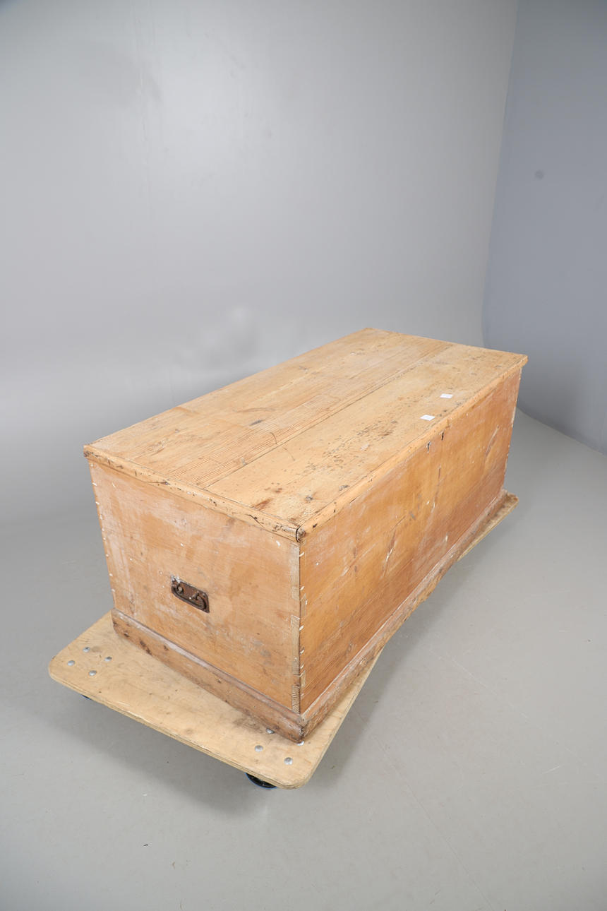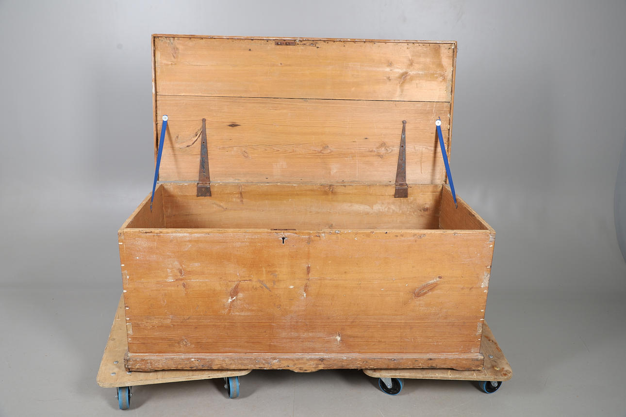 A stripped pine trunk of large size and with carrying handles. 140cms by 67cms, 63.5cms high.