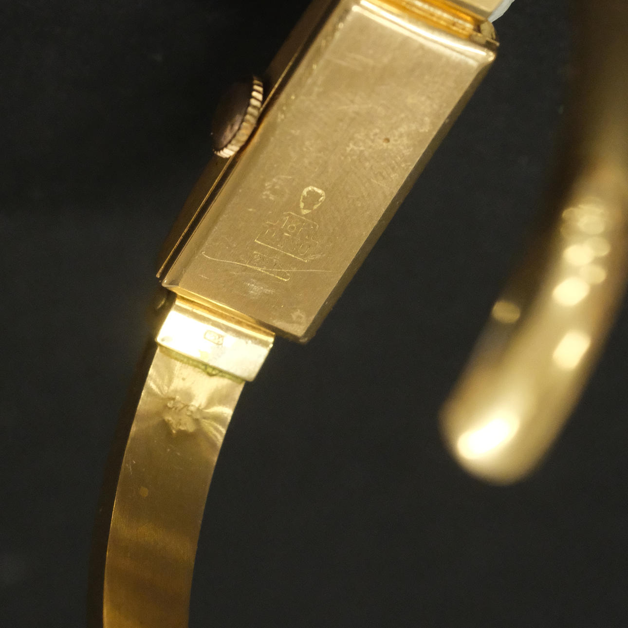 Ladies' watch, manual, rigid hinged bracelet, dial dimensions 0.8 x 1.3 cm, total weight approx. 10.9 grams.