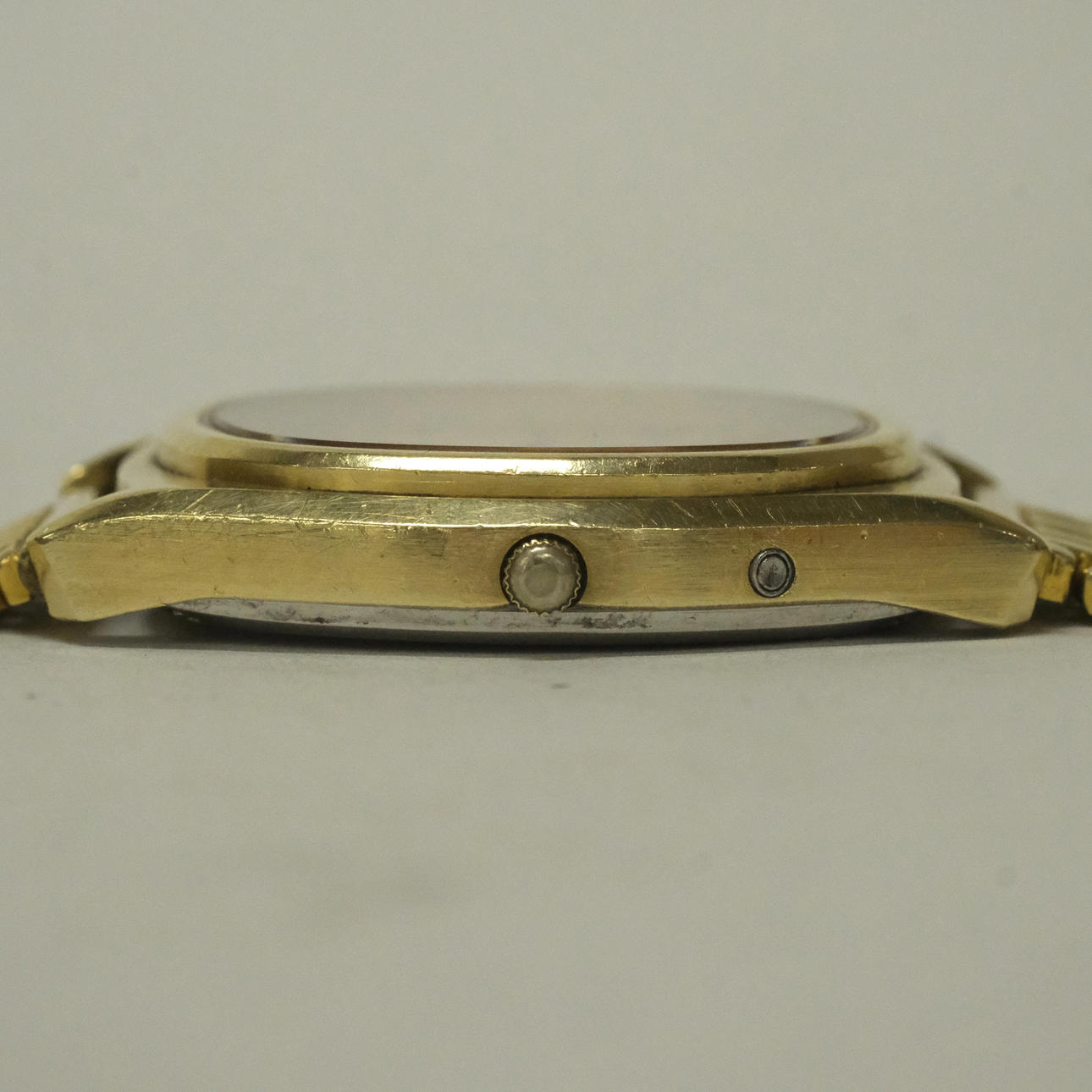 Use- and age-related wear. Engraving. Crystal with a small scratch. Bracelet with tarnishing. Case with scratches and small nicks. Not function tested, no functional guarantee provided.