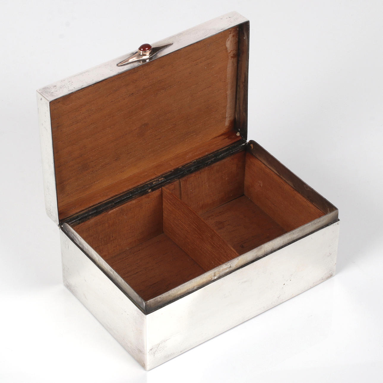 Internal with cedar wood, length 14,5, width 9,5, height 6,5 cm.