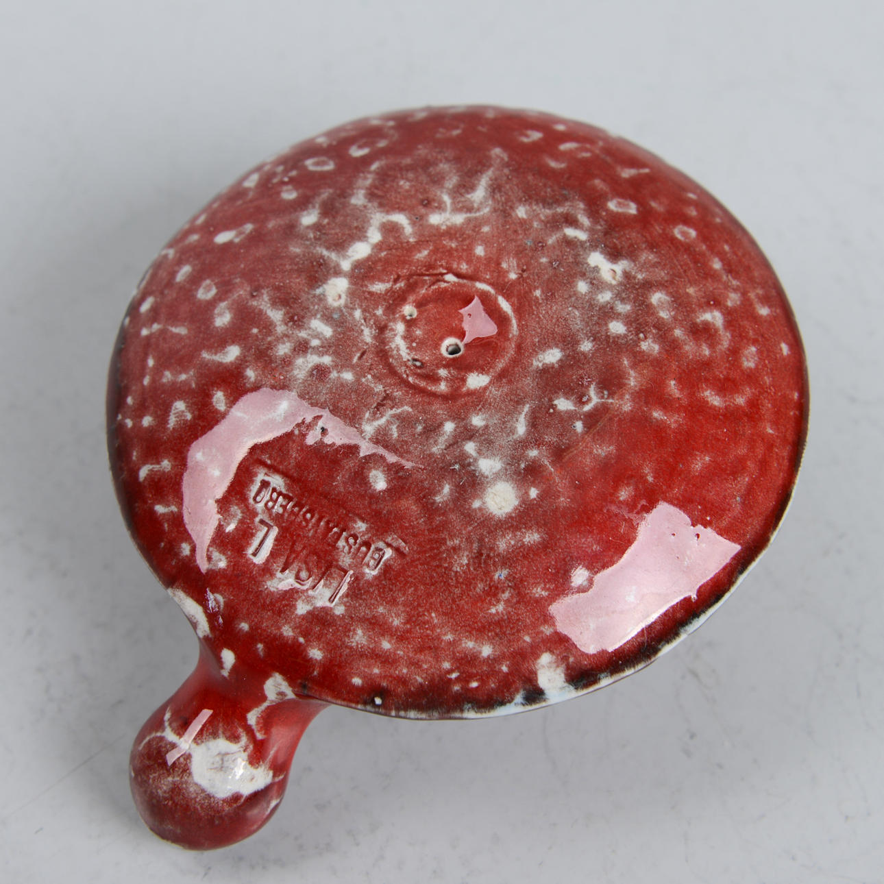 Red-glazed stoneware. Length 11 cm.