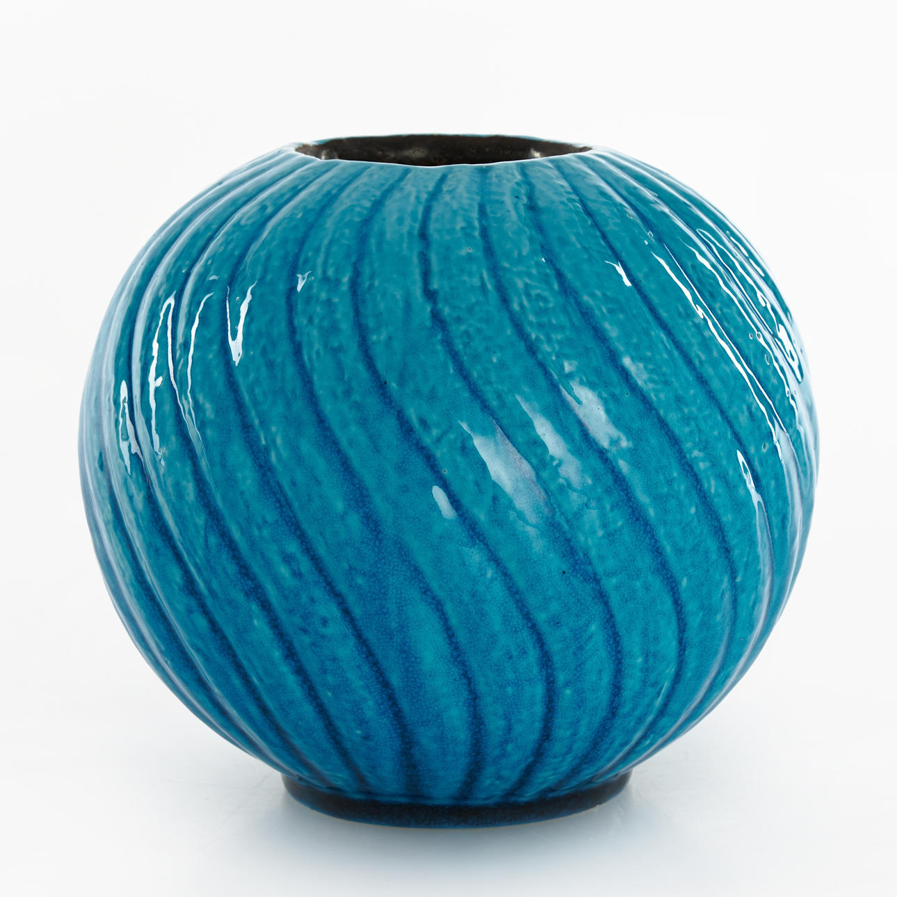 5017467. GUNNAR NYLUND. A blue glazed stoneware 'Chamotte' globe vase, Rörstrand.