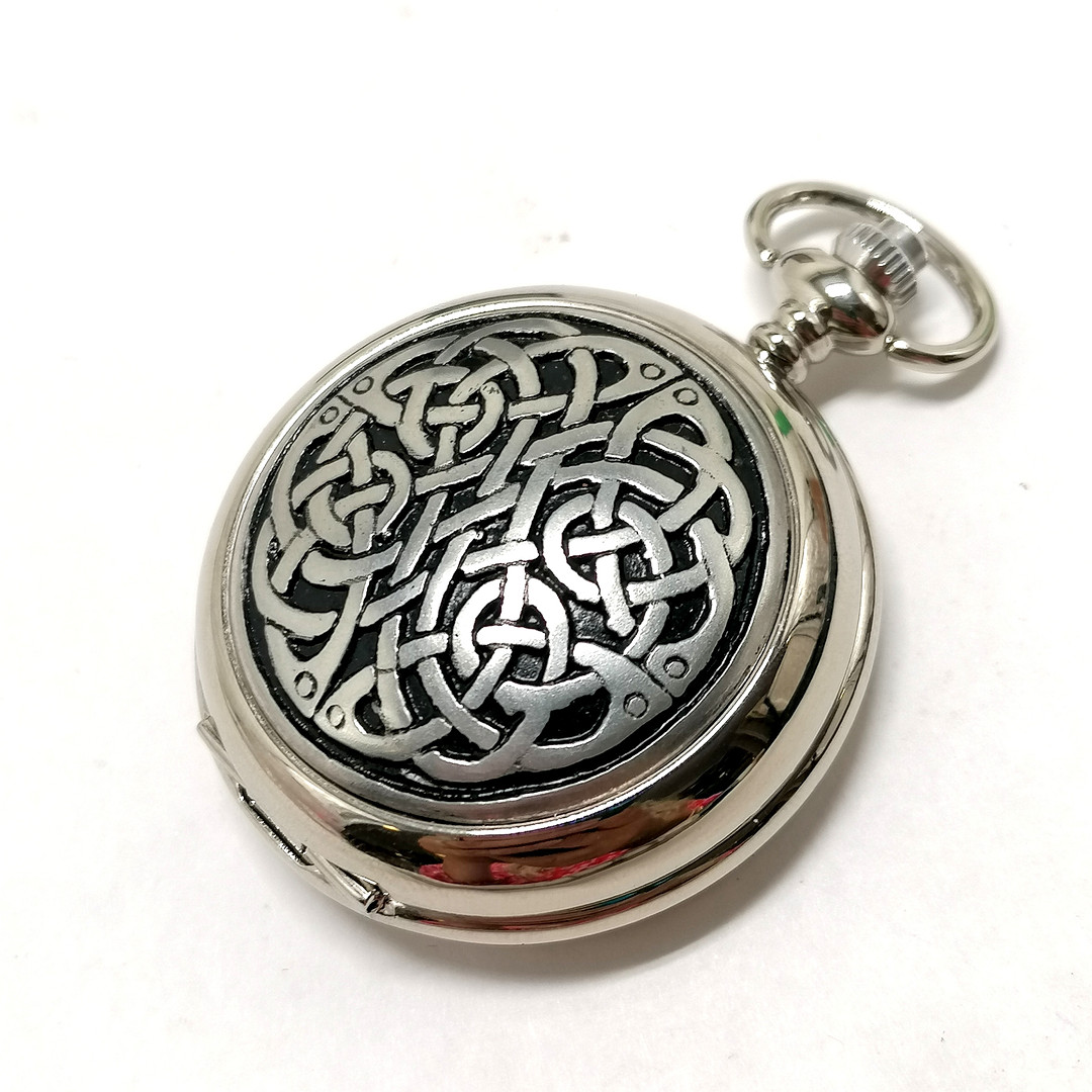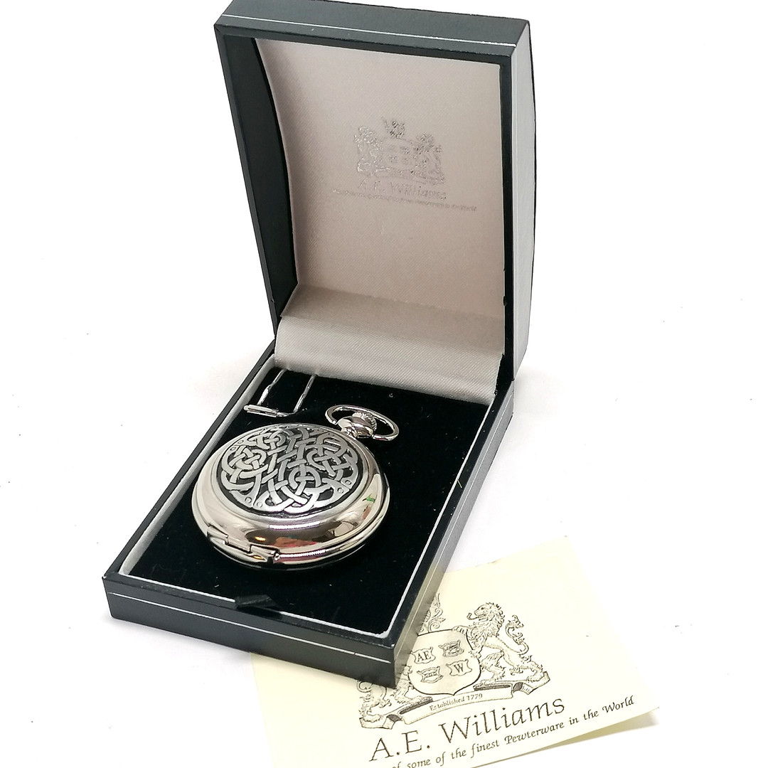 5017603. *A E WILLIAMS CELTIC PEWTER QUARTZ POCKETWATCH.