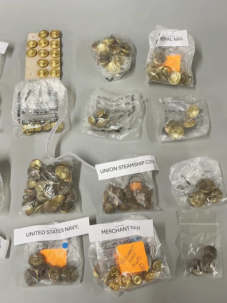 A quantity of mixed maritime officer's uniform buttons, approximate volume 30 x 20 x 11cm.