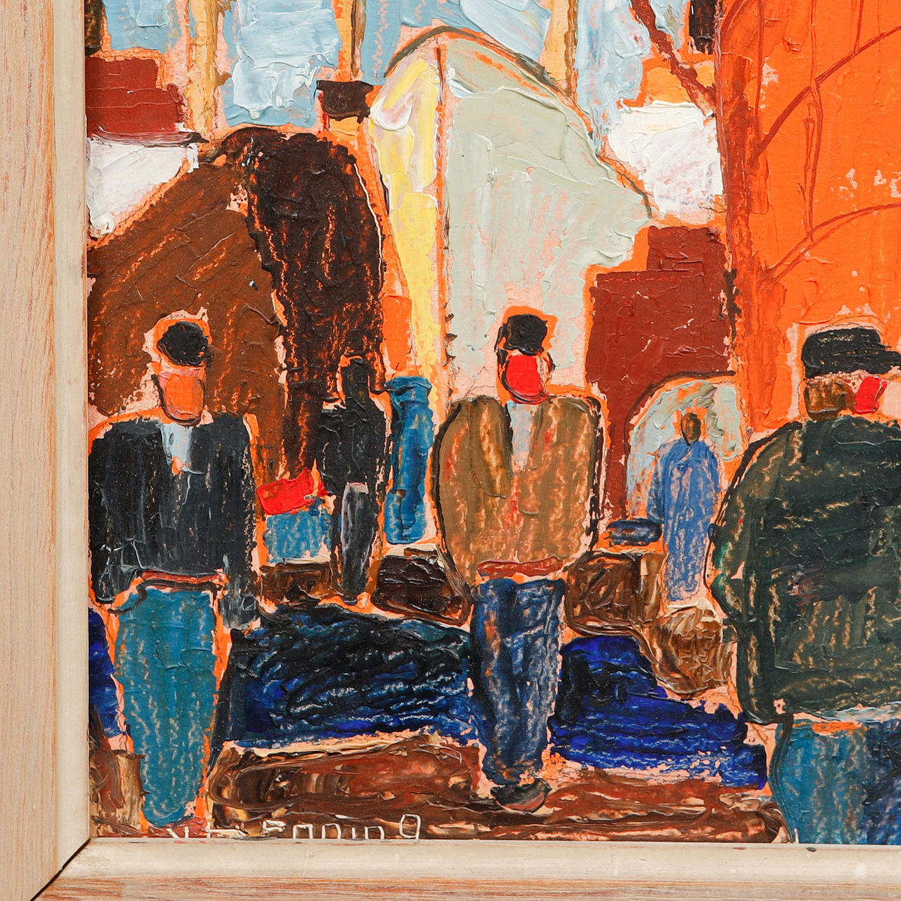 5017630. WILHELM HENNING. Cityscape with figures, oil on panel, signed.