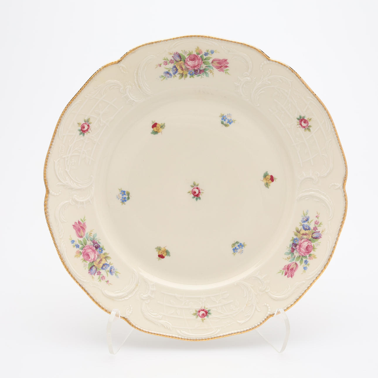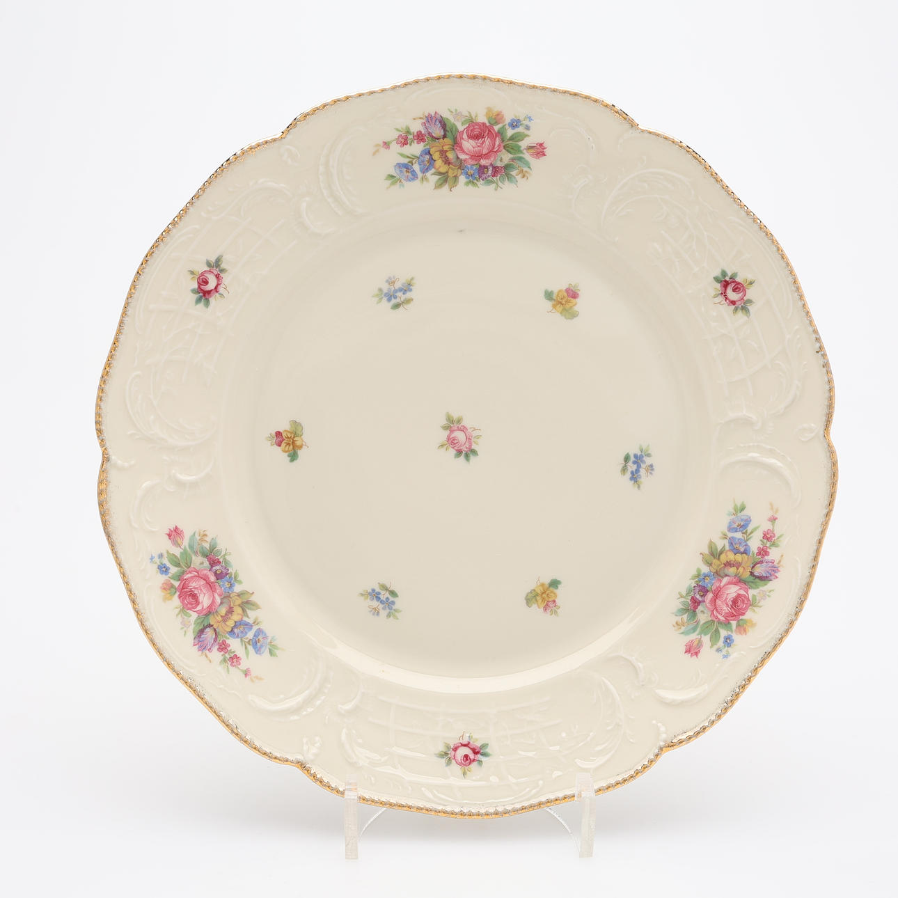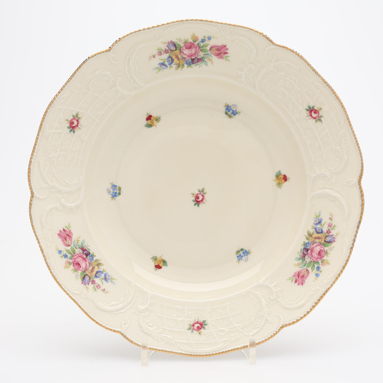 Porcelain with floral decor with gold edge. 12 deep plates, diameter approx. 25 cm.