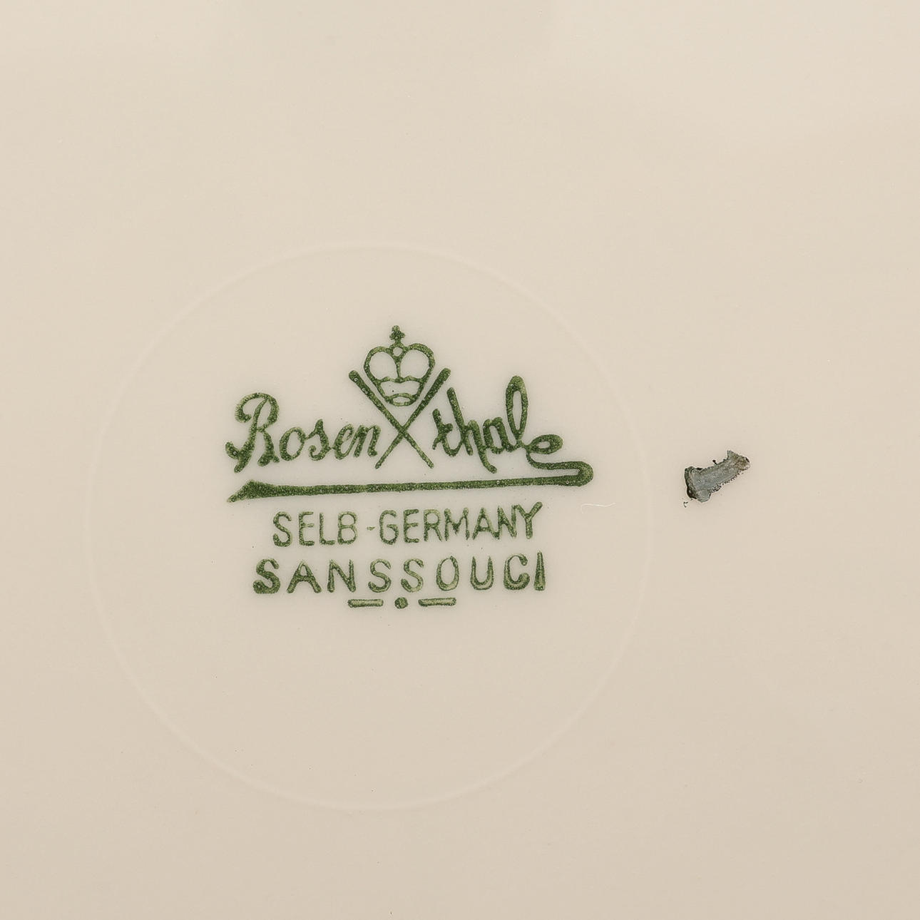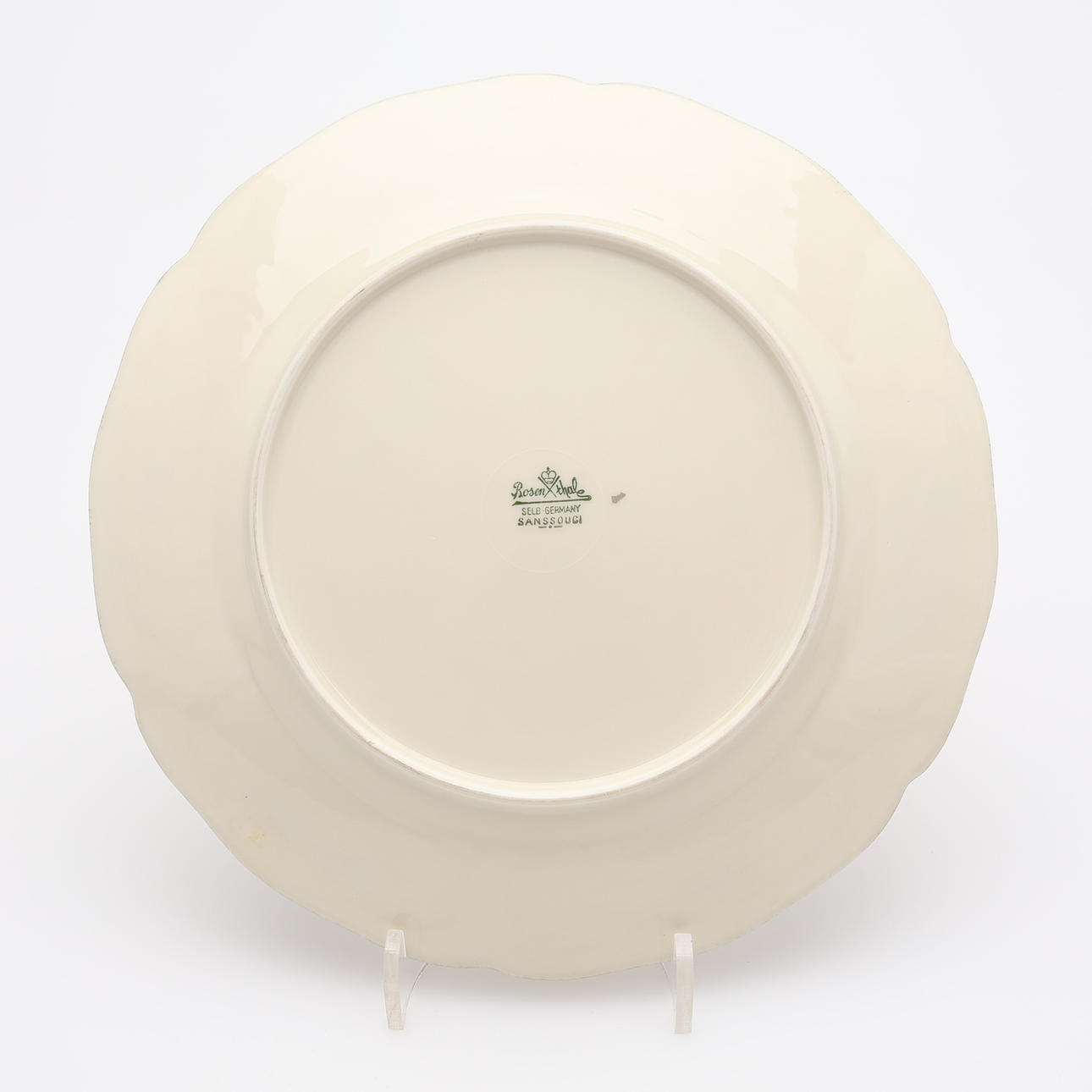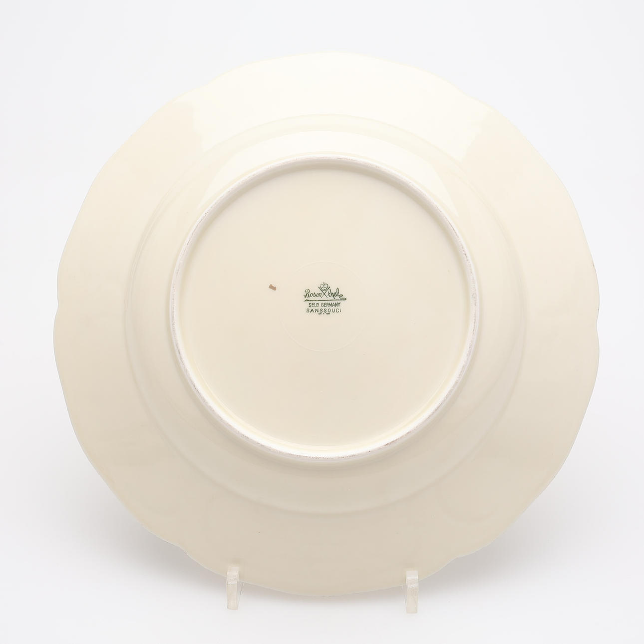 Porcelain with floral decor with gold edge. 12 deep plates, diameter approx. 25 cm.