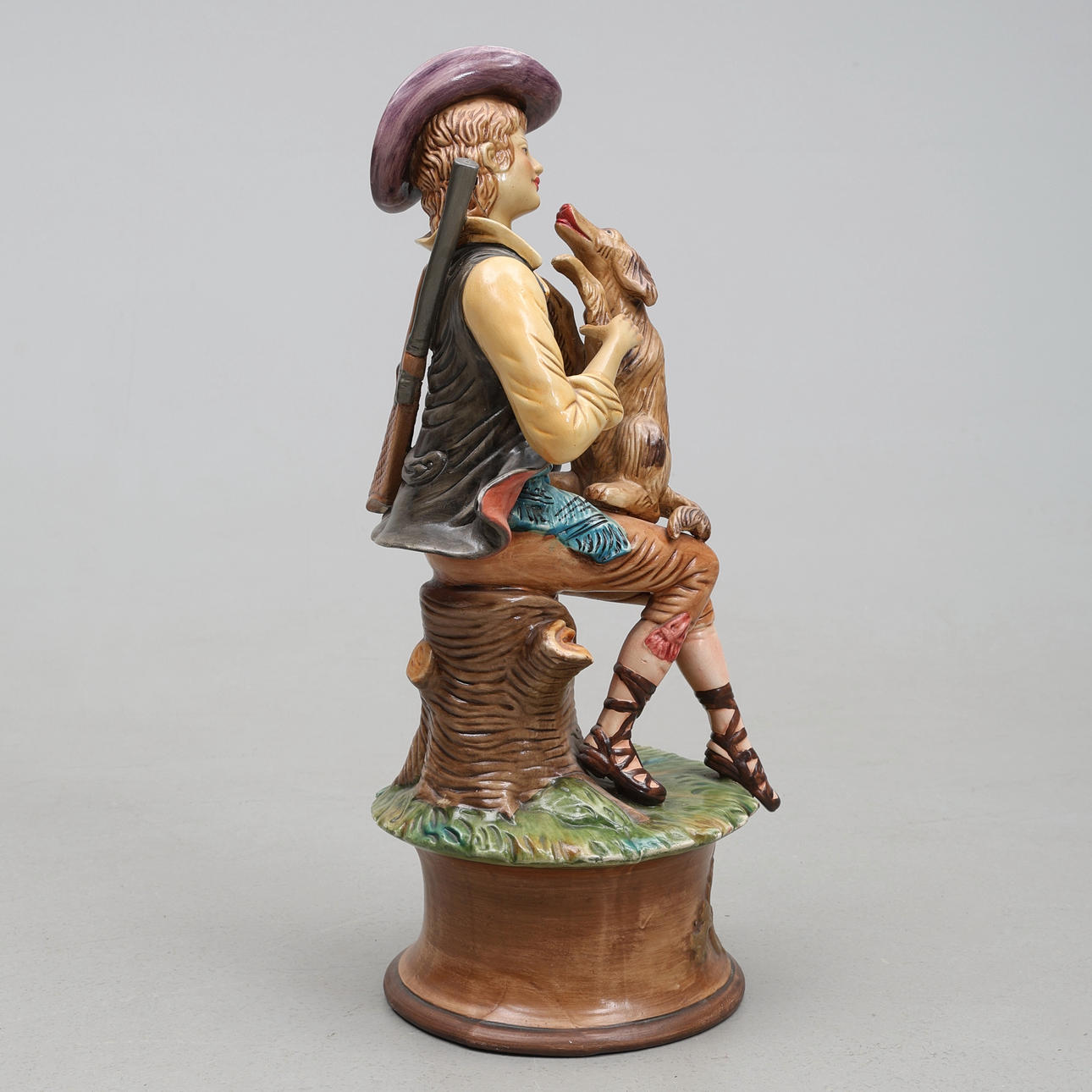 5017751. SCULPTURE/FIGURINE, hunter with dog, ceramics.