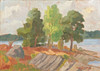 5017888. OSKAR JONSSON. “Trees on the cape”, oil on panel, signed.