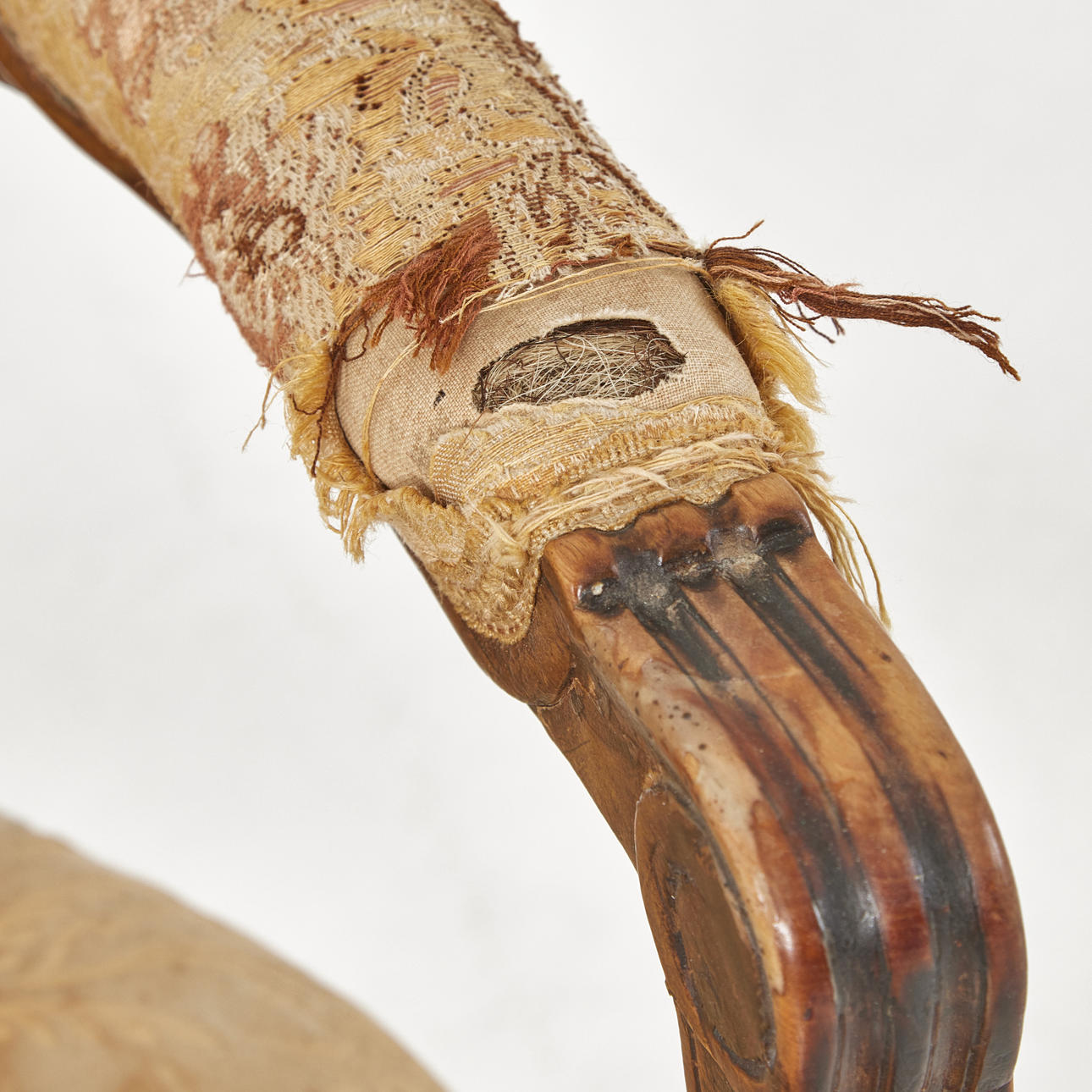 One with cracked back, wear and damage, worn upholstery.