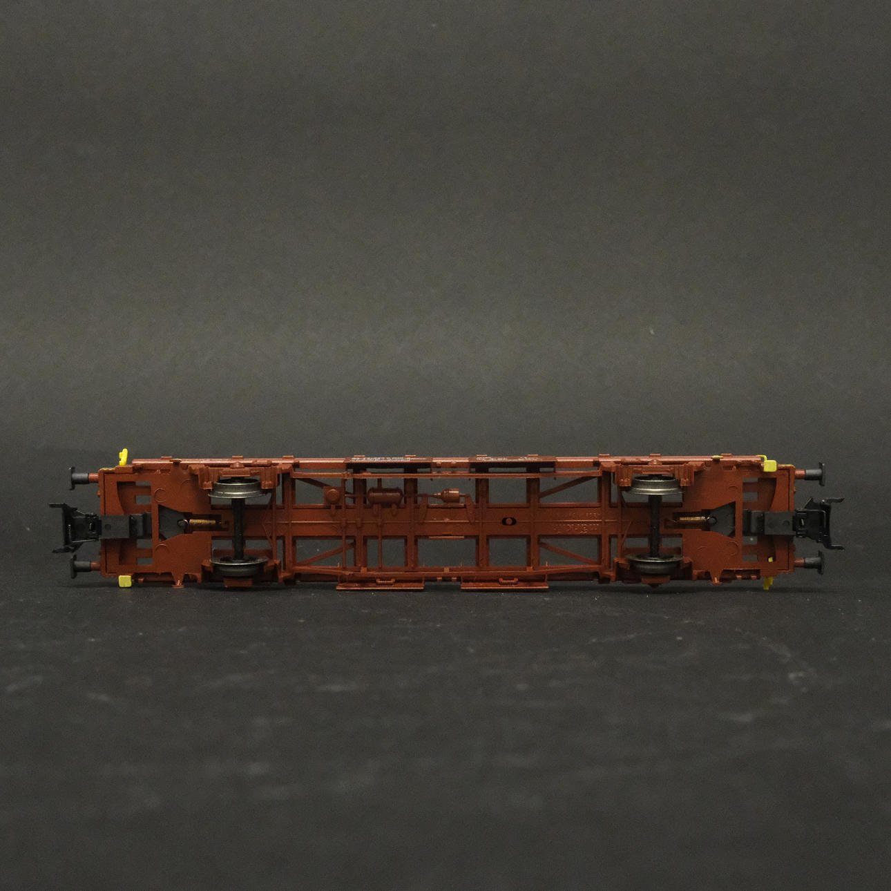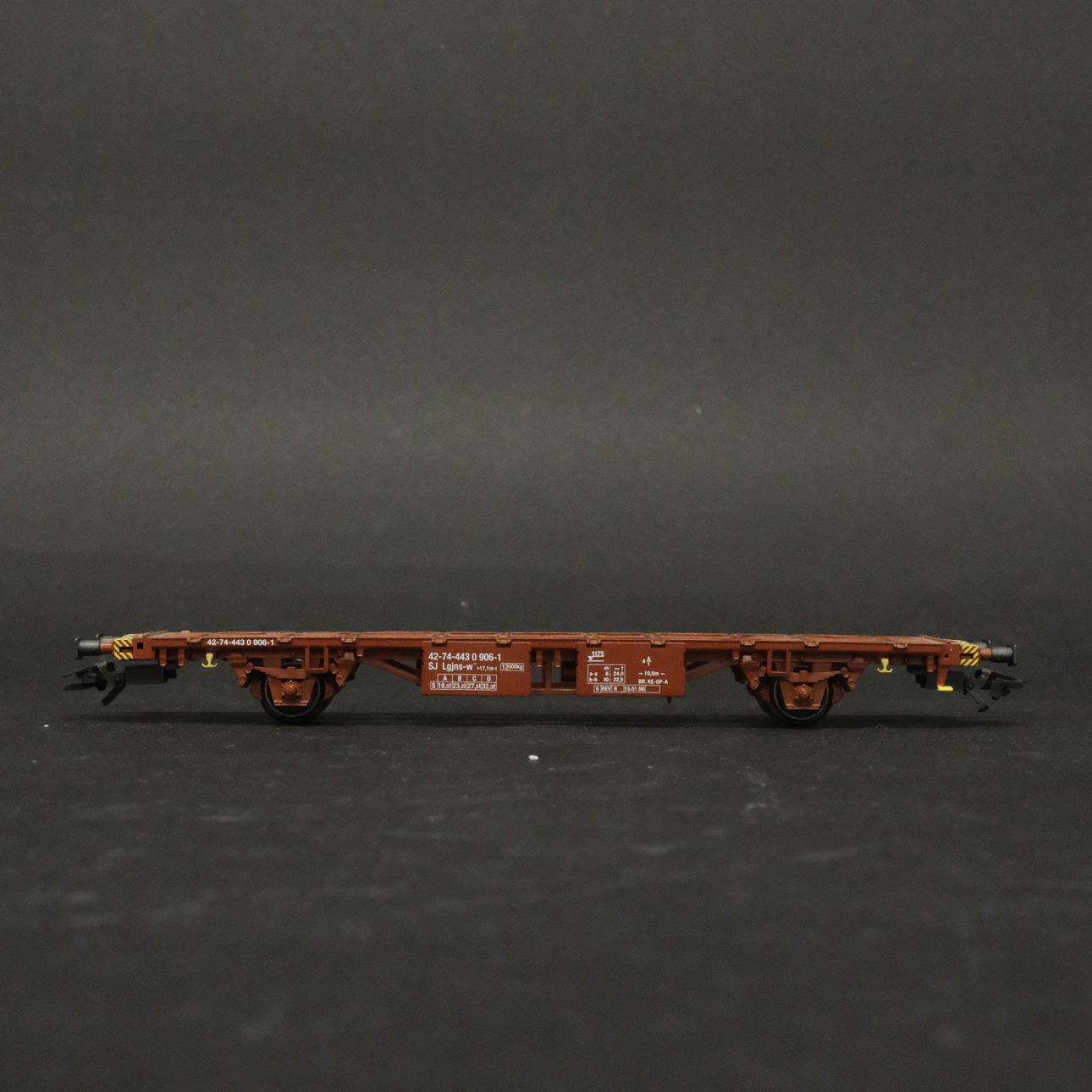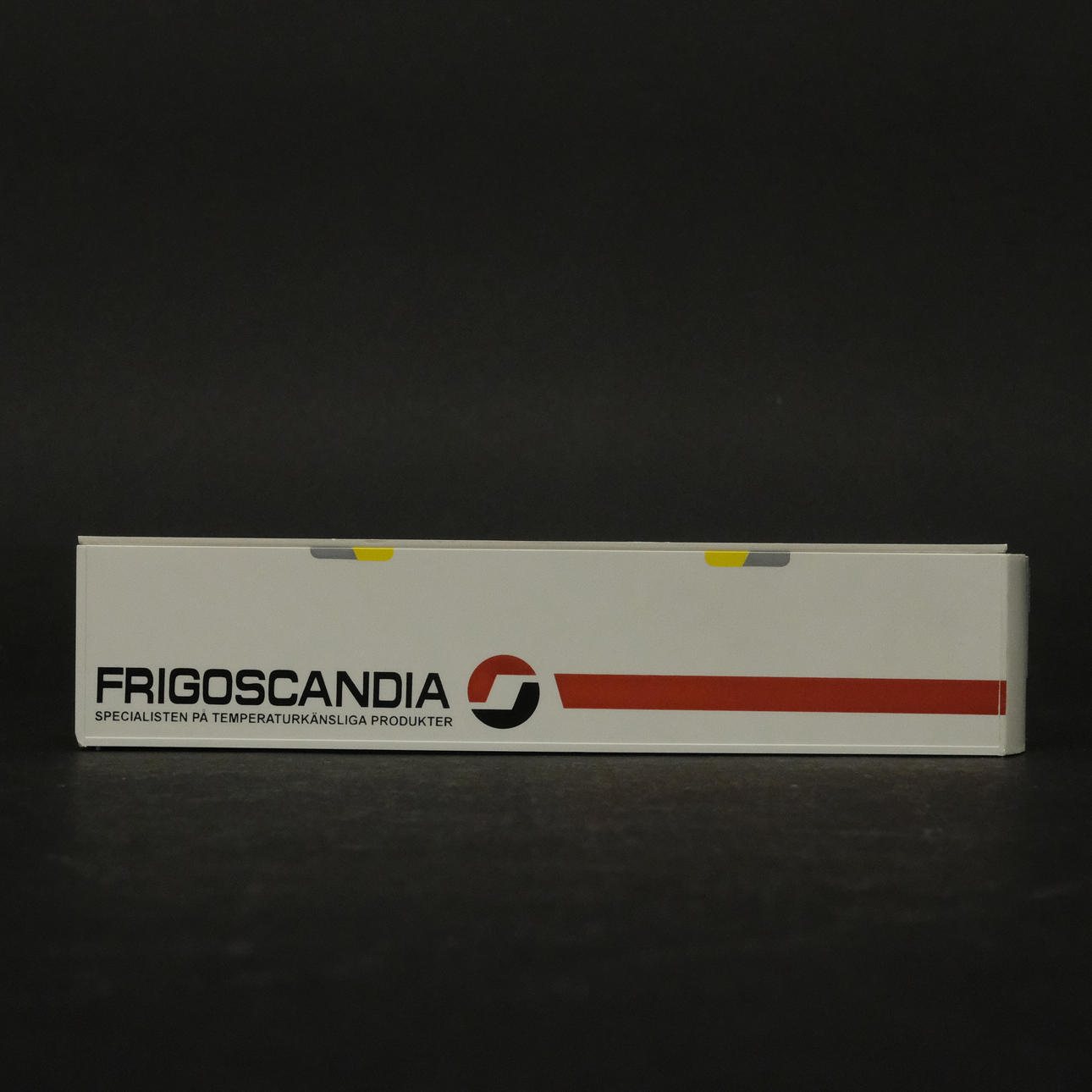 Three freight wagons with advertising including Volvo, Bilspedition, Frigoscandia, etc.