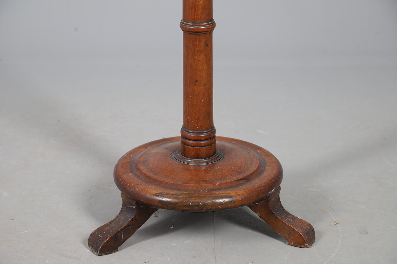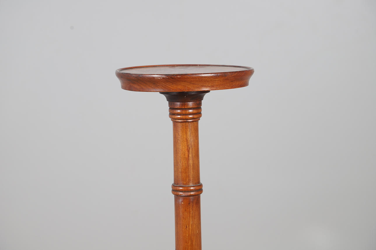 Raised on turned central column on pedestal base with tripod supports, weighted at bottom, D39 x H133cm.