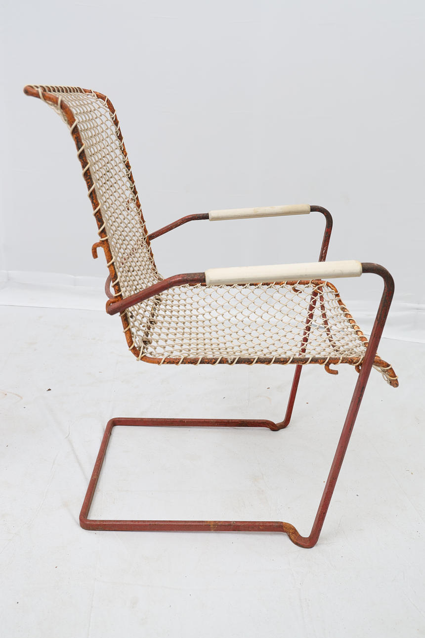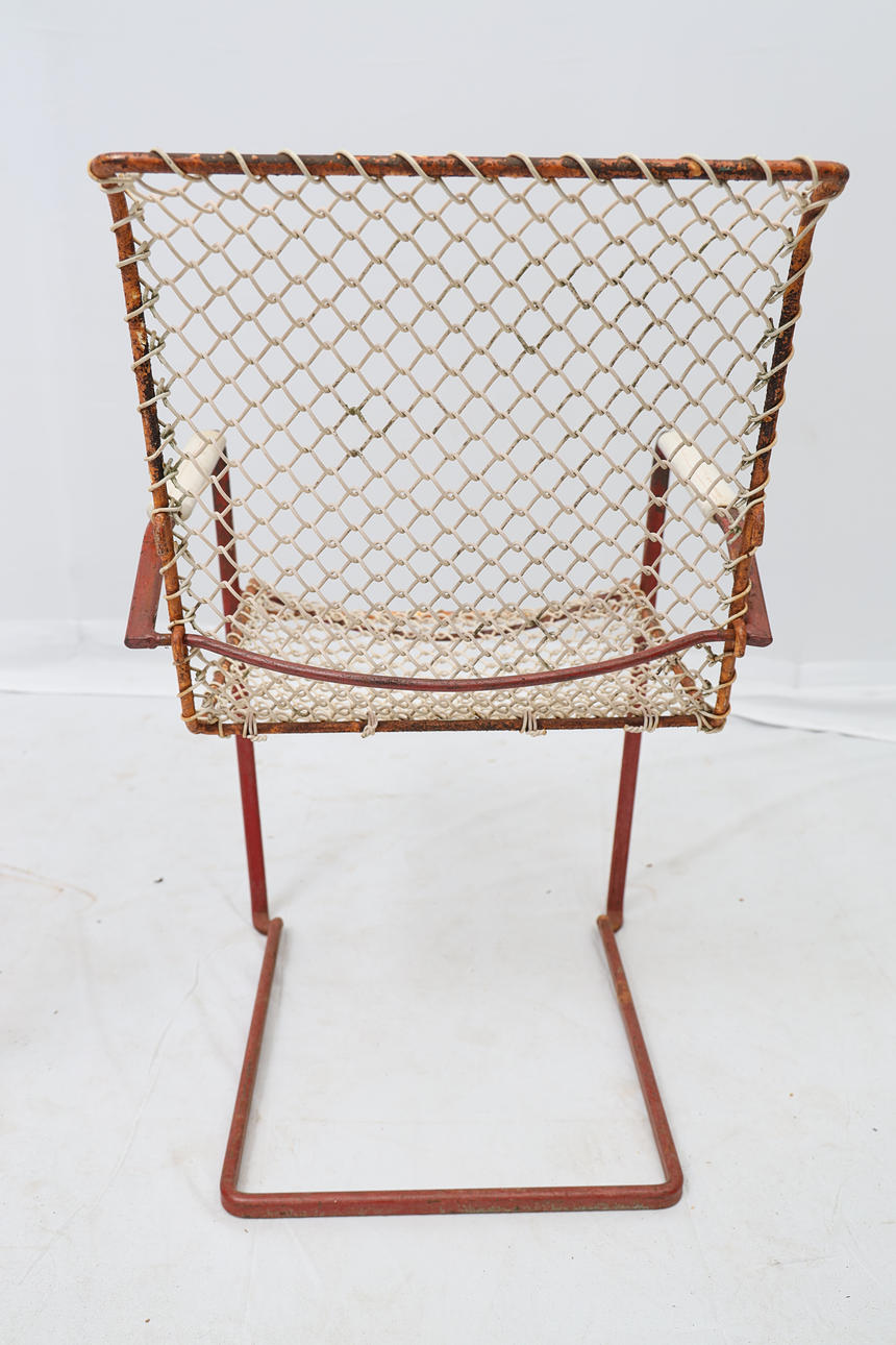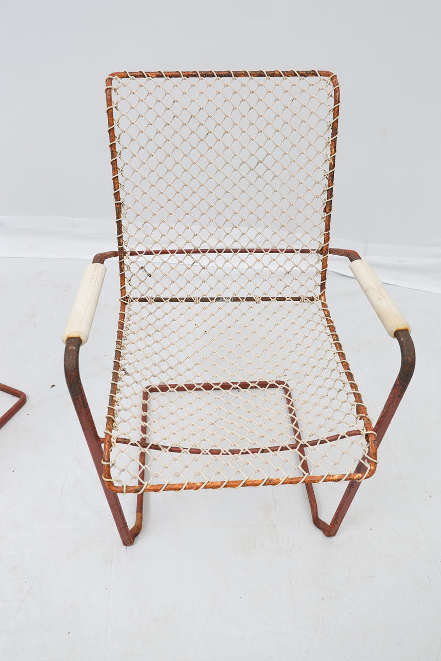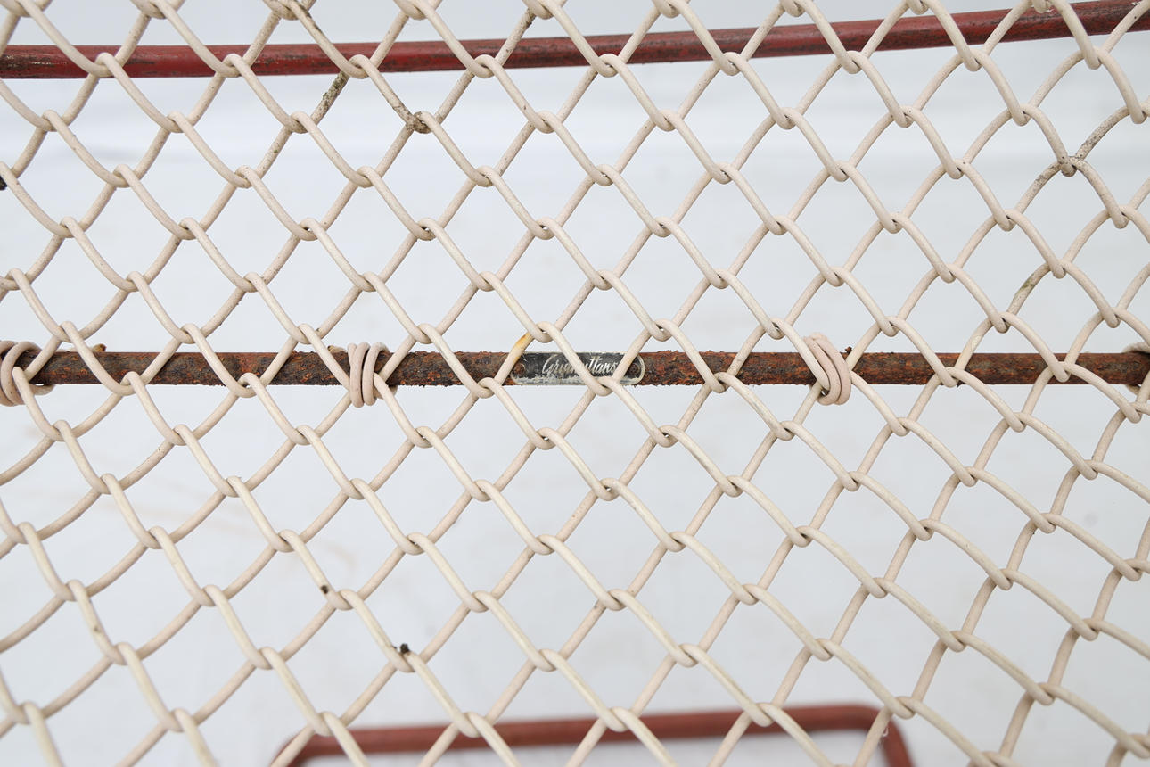 Iron and metal. Detachable seats. Stackable. Labelled.