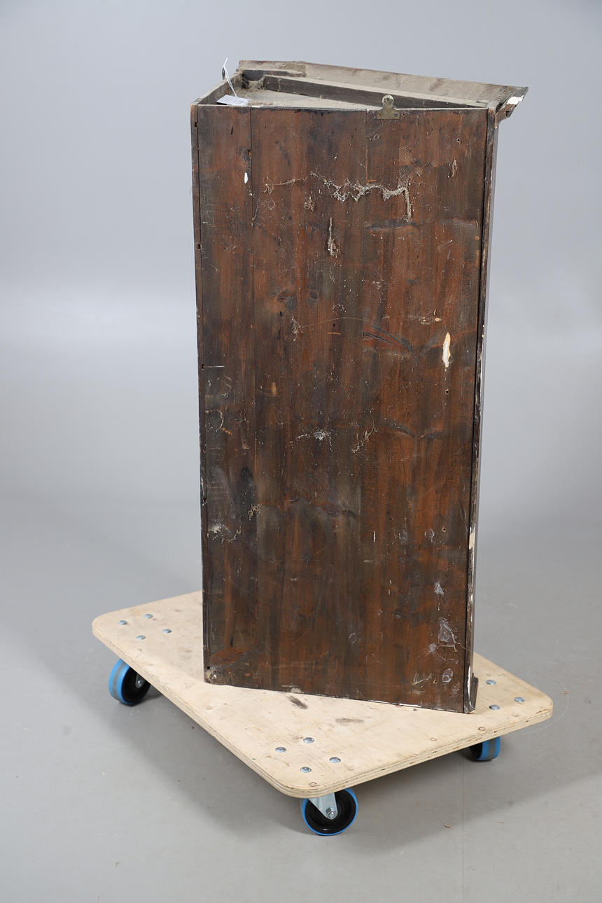 Wear commensurate with age and use. Shelves slightly stained, extremities scuffed, key present, see online images.
