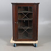 With dentil cornice above a glazed panelled door opening to a three-shelf interior, W72 x H104 x D40cm.